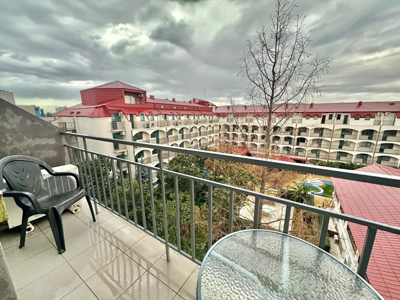 Локацията е изключително удобна – само на 7–8 минути пеша от плажа, а центърът на курорта с всички магазини, кафенета, ресторанти, аптеки и транспортни връзки е също в близост. Това студио съчетава комфорт, практичност и атрактивна локация, идеално за ваканционен живот или доходоносна инвестиция.