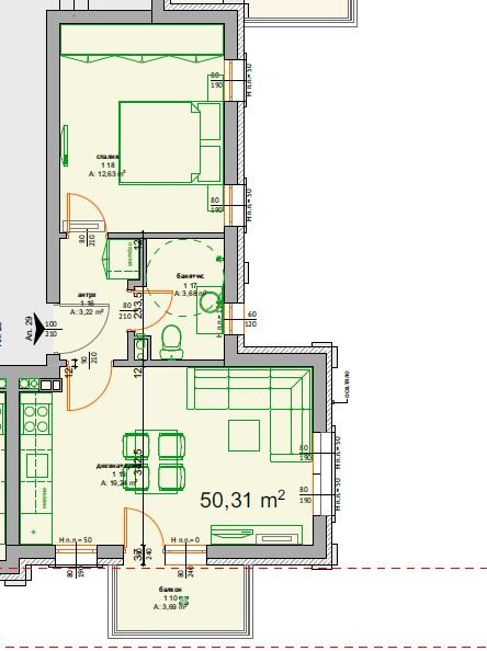 Апартаментът предлага добре обмислено разпределение: входно антре, светла дневна с място за кухненски бокс и трапезария, самостоятелна спалня, баня с тоалетна и един удобен балкон. Жилището е двустаено (2 стаи), с 1 спалня, 1 баня и 1 балкон – идеално за двойка, малко семейство или за отдаване под наем.