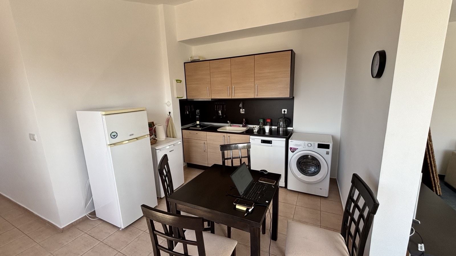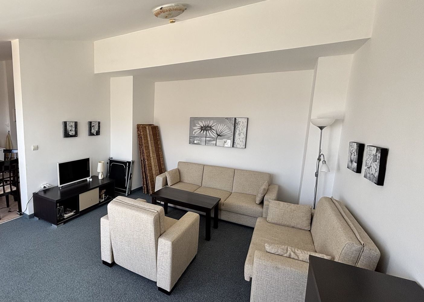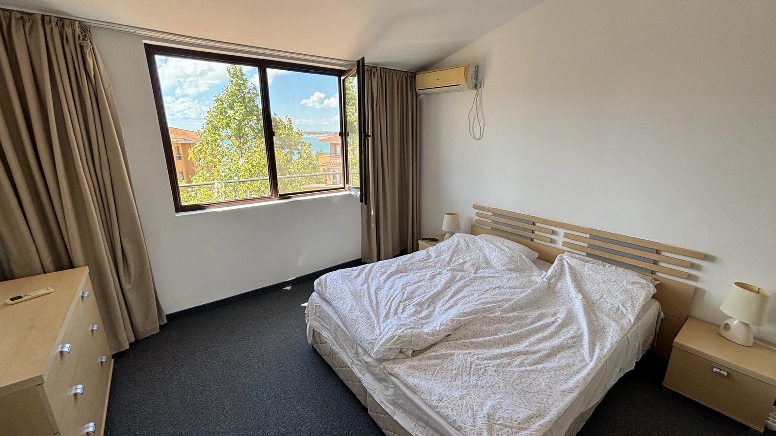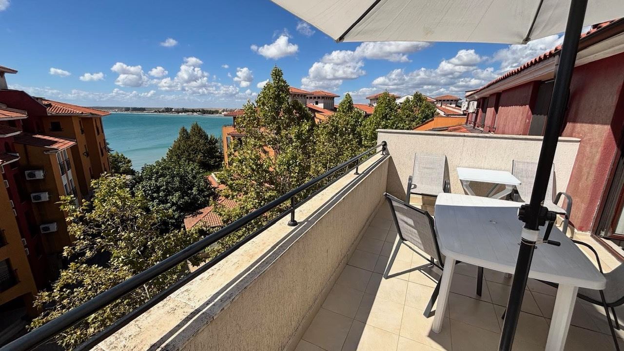 Представяме ви голям и комфортен двустаен апартамент с впечатляваща гледка към морето от всички стаи, разположен в елитен ваканционен комплекс в Ахелой. С обща площ от 96 м2, този имот съчетава простор, функционалност и изискан комфорт – идеален избор както за целогодишно обитаване, така и за сезонно отдаване под наем. Апартаментът се състои от приветлив коридор, баня с вана и тоалетна, отделна кухня, светла и уютна дневна, просторна тераса с прекрасни морски панорами, както и комфортна спалня. Жилището се предлага напълно обзаведено с наличните мебели и техника, готово за нанасяне веднага. Разпределението е внимателно обмислено, за да осигури максимална светлина и усещане за простор, а голямата тераса е истинско продължение на дневната зона – идеална за сутрешно кафе, релакс или вечеря на открито с гледка към хоризонта.