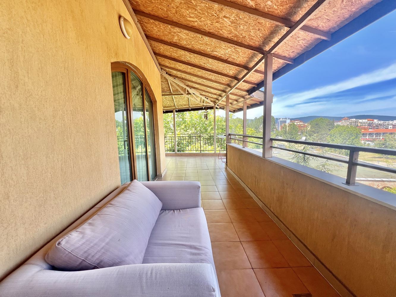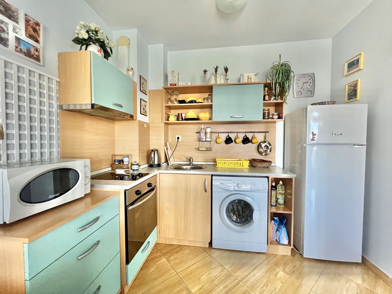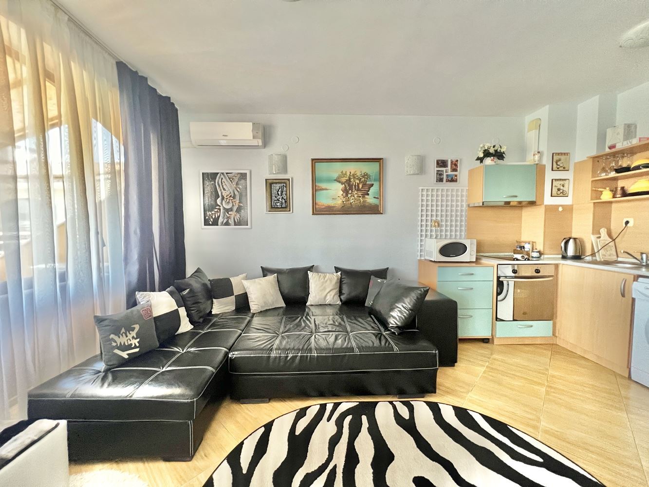 Продава се страхотен двустаен апартамент в близост до плажа на к.к. Слънчев бряг. Този стилен и уютен имот с обща площ от 101,50 м2 е разположен на последен етаж в съвременна сграда с асансьор, което го прави идеален за вашия нов дом или ваканционно убежище. Апартаментът предлага комфортно разпределение и функционалност. Влизайки, ще намерите слънчева дневна с кухненски бокс. Комфортната спалня предоставя идеално място за отпочиване и релакс. Голам балкон към жилището предлага красива гледка към околността, където можете да се наслаждавате на красиви гледки. Апартаментът е напълно обзаведен и оборудван с всичко необходимо, за да се настаните веднага. Модерната баня е внимателно проектирана за удобство и функционалност.