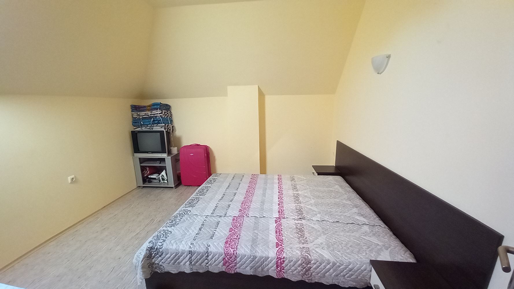 Представяме ви привлекателен тристаен апартамент с обща площ от 80 м2, разположен на последен етаж в добре поддържан комплекс с асансьор в к.к. Слънчев бряг. Имотът впечатлява с панорамни гледки към басейна, много светлина и усещане за простор, а комфортното обзавеждане го прави готов за непосредствено ползване или отдаване под наем. Функционалното разпределение включва всекидневна с кухненски бокс и кът за хранене, две самостоятелни спални, една баня с тоалетна и един удобен балкон с директен изглед към басейна. Последният етаж гарантира допълнително спокойствие и уединение, без съседи над вас, а гледките създават приятна атмосфера за сутрешно кафе и вечерни моменти на открито. Жилището се предлага с наличните мебели, подбрани така, че да осигурят комфорт и практичност, с достатъчно място за съхранение и уютна атмосфера. Общите части на сградата са чисти и поддържани, достъпът е удобен благодарение на асансьора, а зоната около комплекса е озеленена и приятна за разходки и отдих.
