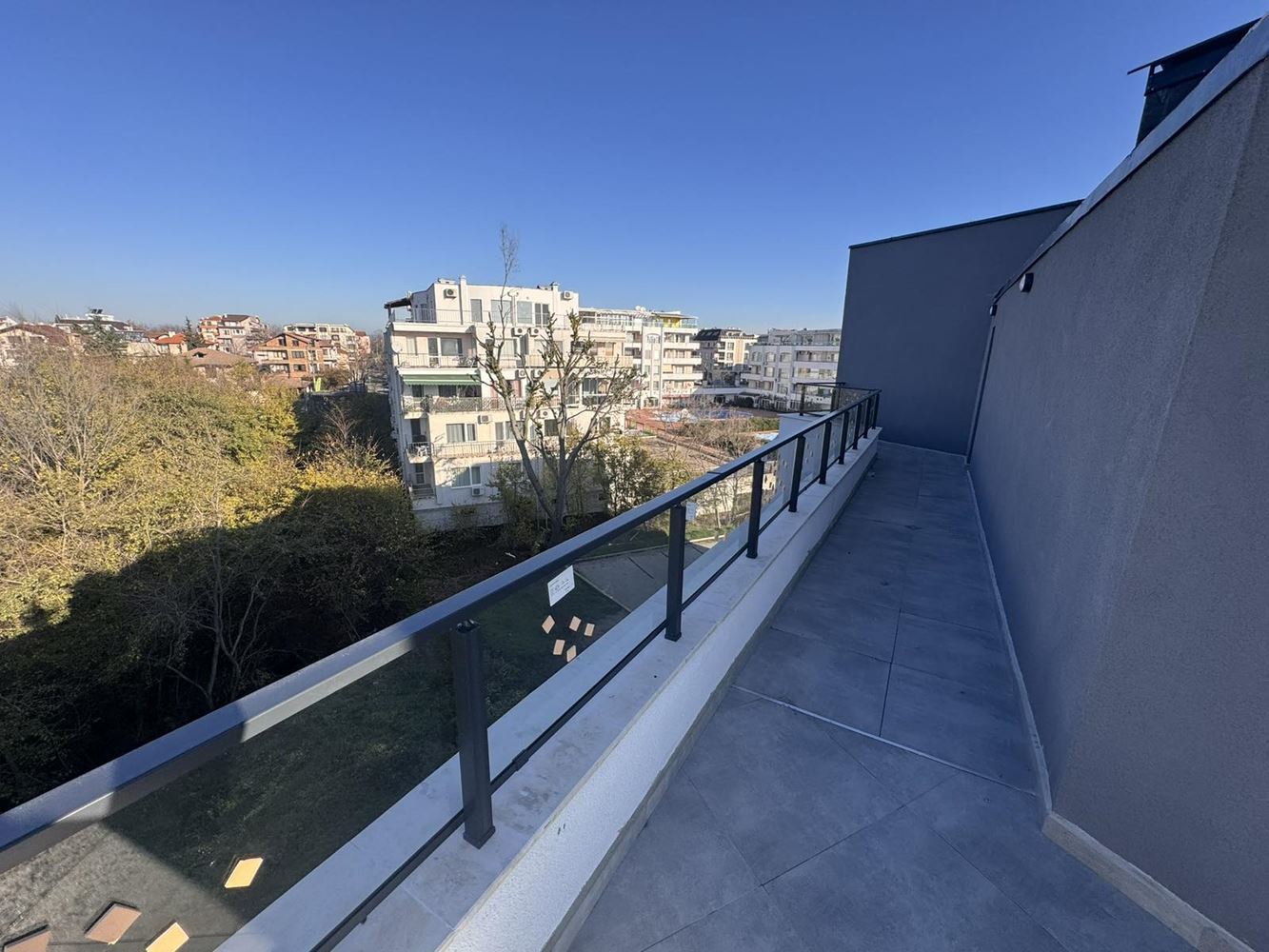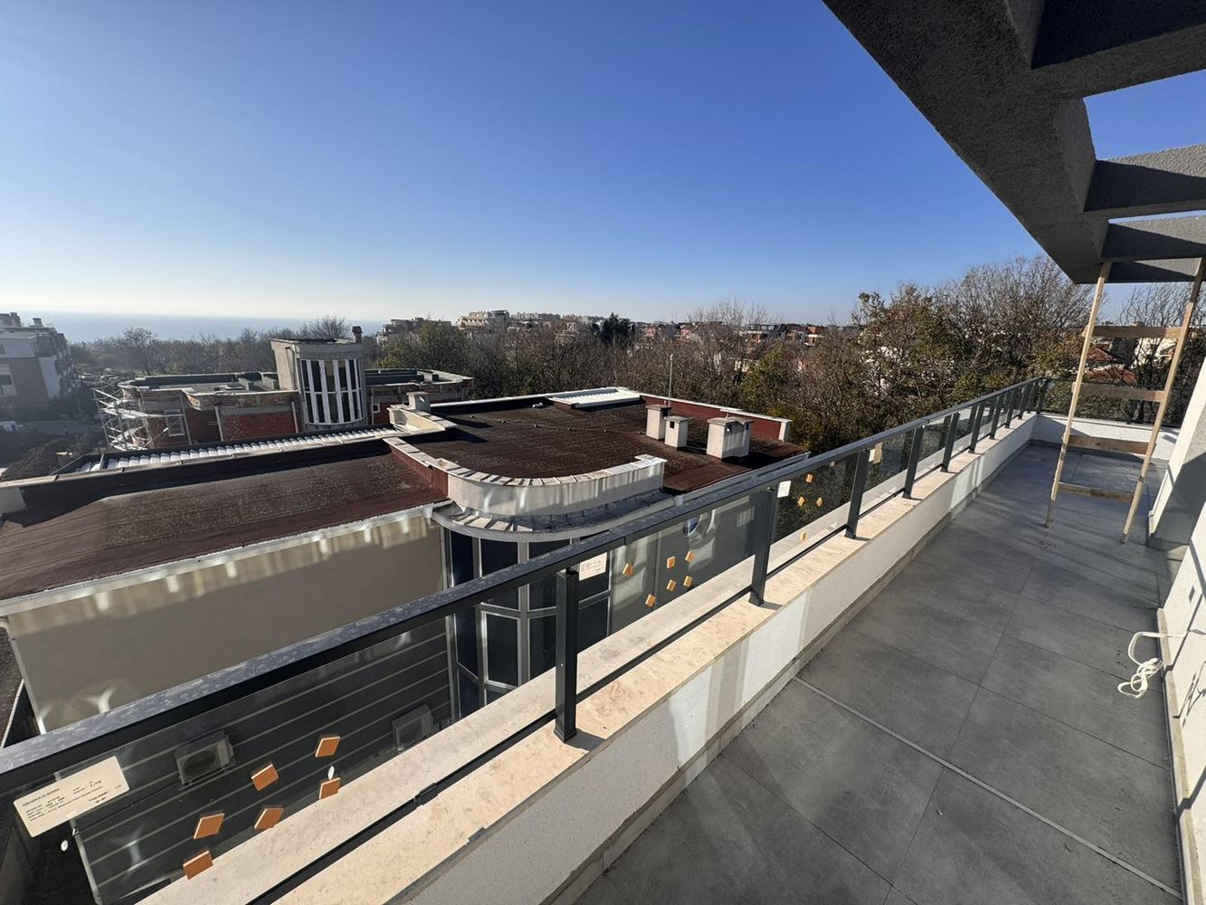 Представяме ви панорамно студио с гледка към морето, разположено на пети и последен етаж в нова сграда с Акт 16, което го прави напълно готов за ползване. Имотът се предлага на тапа и разполага с просторна тераса, от която се откриват впечатляващи морски панорами – идеално място за релакс, сутрешно кафе или вечерно разпускане.