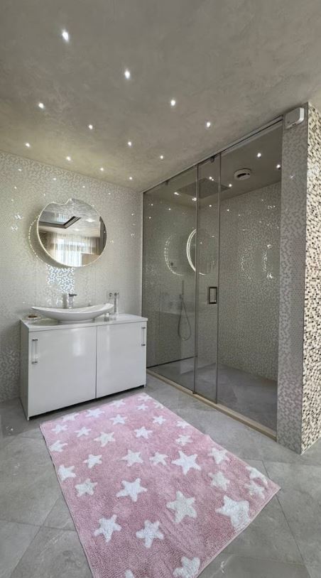 Жилището се отличава с функционално и представително разпределение: пет самостоятелни помещения, сред които четири просторни спални, четири бани и две тераси с директна гледка към морето. Дневната зона е замислена като природно продължение на панорамата – въздух, светлина и усещане за свобода, допълнени от елегантни акценти и внимателно подбрани аксесоари.