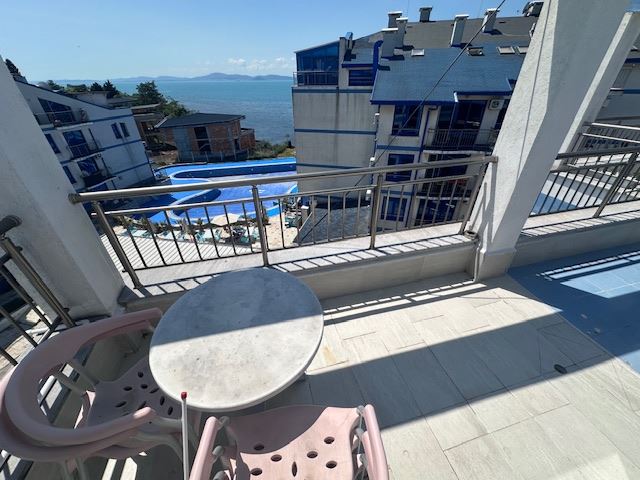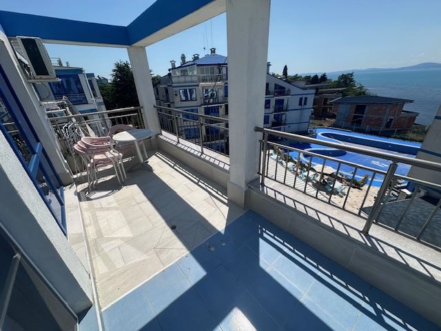 Представяме ви уникална възможност да си закупите изключителен четиристаен апартамент с площ от 135 м², разположен в комплекс на първа линия в Поморие. Този имот съчетава модерна архитектура, комфорт и зашеметяваща морска гледка, която ще ви остави без дъх. Апартаментът е идеален както за семейна лятна почивка, така и за целогодишно пребиваване. Разполага с три удобни спални, две модерно оборудвани бани, две просторни тераси и светла, просторна всекидневна, която предлага гледка към безкрайното море. Мястото за събирания със семейството наистина впечатлява и създава атмосфера на уют и спокойствие.