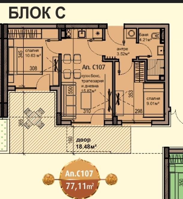 Представяме ви модерен двустаен апартамент с личен двор, разположен в нов, перспективен комплекс в Равда, само 300 метра от морския бряг. Имотът е с площ 77,11 м² и се намира на партерен етаж, като към него принадлежи собствено дворче с площ 18,45 м², което осигурява допълнително пространство за отдих, градинарство или уютни вечери на открито. Апартаментът се предлага без мебели, до ключ, с завършена и оборудвана баня, което позволява на бъдещия собственик да реализира интериора според личния си вкус и стил. Разпределението включва антре, светла дневна с кухненски кът, самостоятелна спалня и баня с тоалетна, като от всички основни помещения има достъп до личния двор. Това превръща жилището в идеален избор за семейства, двойки или хора, които търсят удобно ваканционно или целогодишно жилище близо до морето.