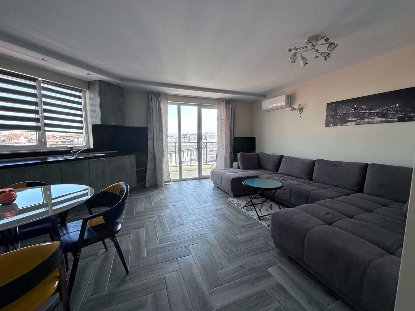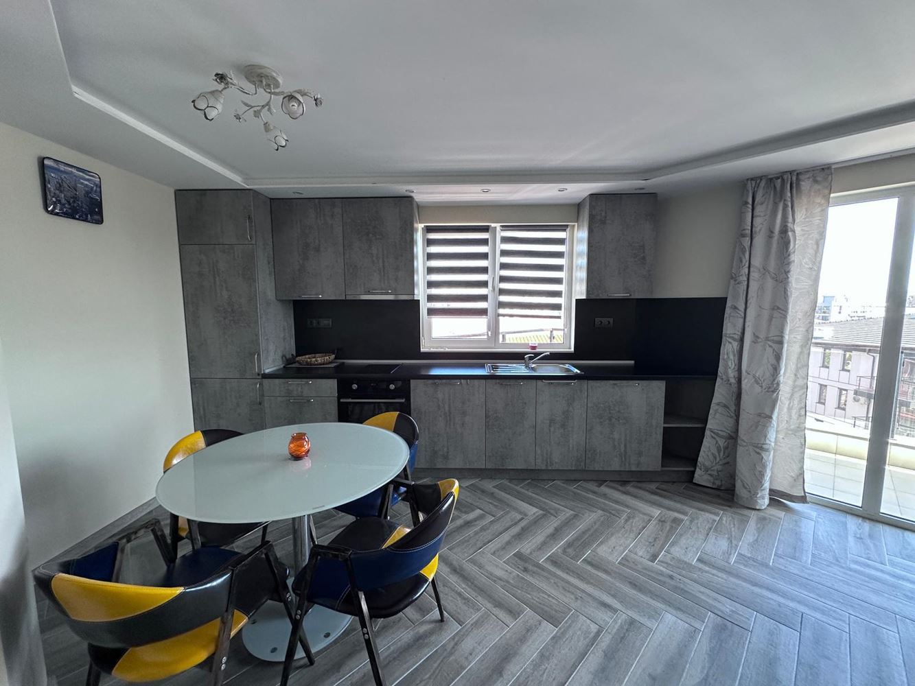 Напълно обзаведен апартамент с една спалня на петия етаж с обща площ 104 кв.м, предлагащ комфортен и стилен живот. В допълнение към основното жилищно пространство в сутерена има килер, който осигурява допълнително пространство за съхранение. Апартаментът се продава с модерен ремонт, а новите мебели и уреди създават уютна атмосфера. Разпределението включва голяма спалня, баня, просторна кухня-дневна и гардеробна. Двата балкона допринасят за привлекателността на жилището и ви позволяват да се наслаждавате на свежия въздух и гледките. Жилището се намира в комплекс с акт 16. Има отделна партида за вода и електричество. Комплексът предоставя разнообразни удобства като плувен басейн, билярд, детска площадка и стая за деца. За отдих са осигурени барбекю и беседка. През зимата можете да използвате закрития плувен басейн и две сауни, а през лятото се осигурява топла вода от слънчеви панели. Разстоянието до морето е само 50 метра, което прави местоположението на апартамента много удобно за любителите на плажа. За собствениците на автомобили има паркинг както на територията на комплекса, така и извън него. Всички тези характеристики превръщат този апартамент в привлекателен вариант за комфортно живеене в района на морските ваканции.