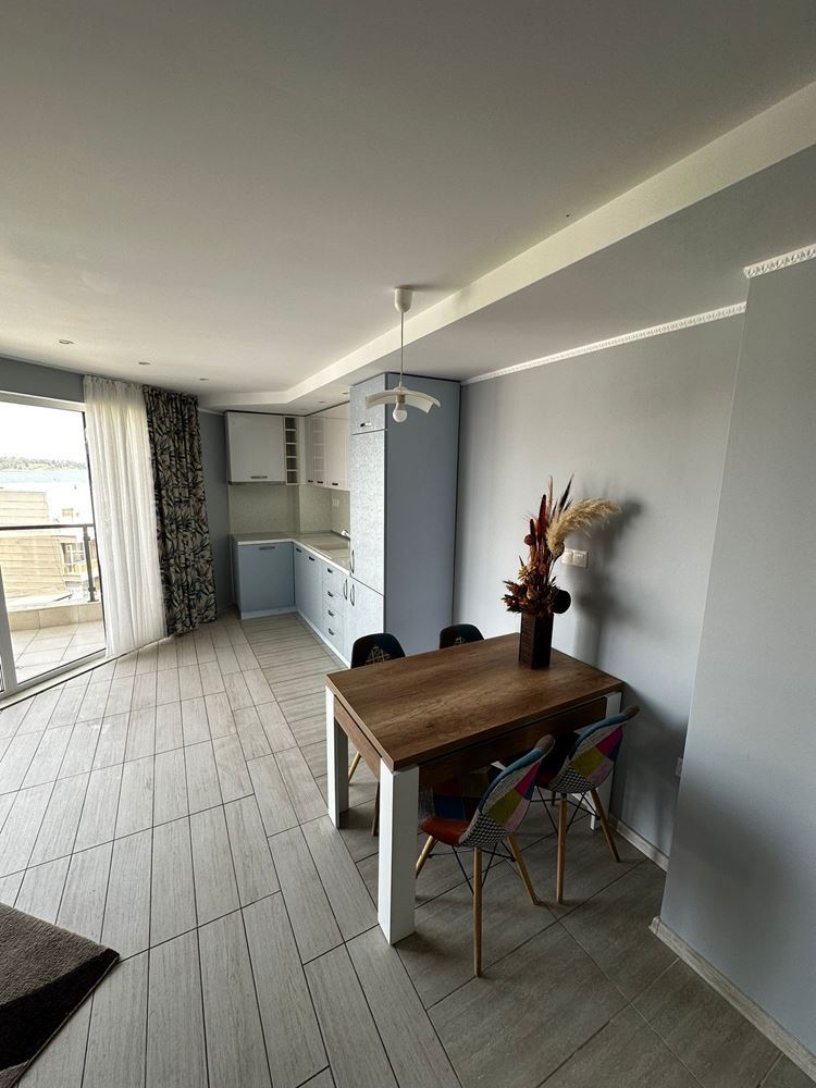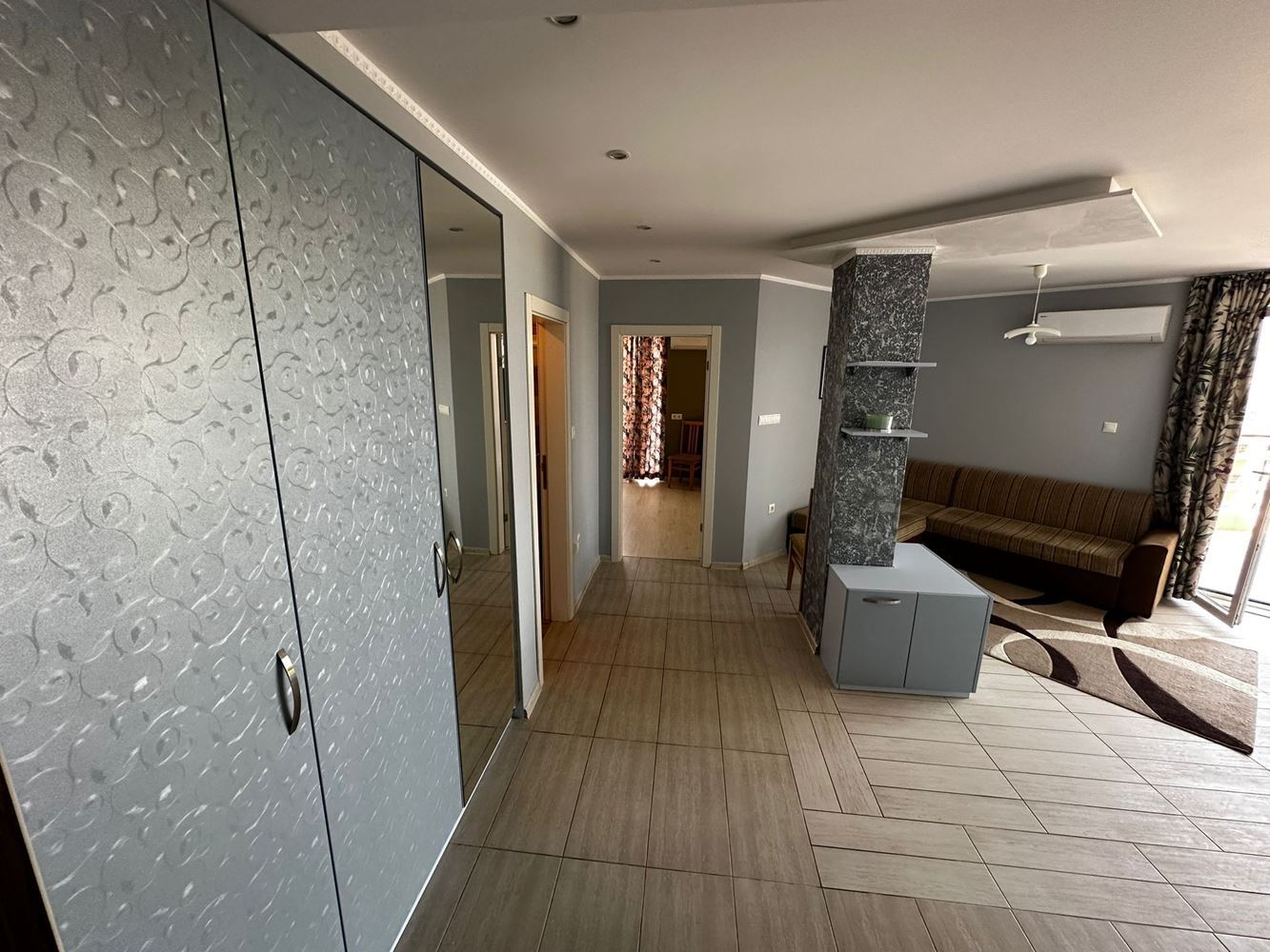 Двустаен апартамент с гледка море на петия етаж с обща площ 102,56 кв. м. предлага комфортен и стилен живот. Апартаментът е напълно обзаведен и предлага страхотни условия за живеене или почивка само на 50 м. от морето. В допълнение към основното жилище в сутерена има килер, който осигурява допълнително място за съхранение. Разпределение на апартамента включва просторна кухня-дневна, голяма спалня и баня. Две тераси с уникална гледка море допринасят за привлекателността на жилището и ви позволяват да се наслаждавате на свежия въздух и гледките. Жилището се намира в комплекс с акт 16. Има отделна партида за вода и електричество. Тук се предлагат разнообразни удобства като плувен басейн, билярд, детска площадка и стая за деца. За отдих са осигурени барбекю и беседка. Разстоянието до морето е само 50 метра, което прави местоположението на апартамента много удобно за любителите на плажа. За собствениците на автомобили има паркинг както на територията на комплекса, така и извън него. Всички тези характеристики превръщат този апартамент в привлекателен вариант за комфортно живеене в района на морските ваканции.