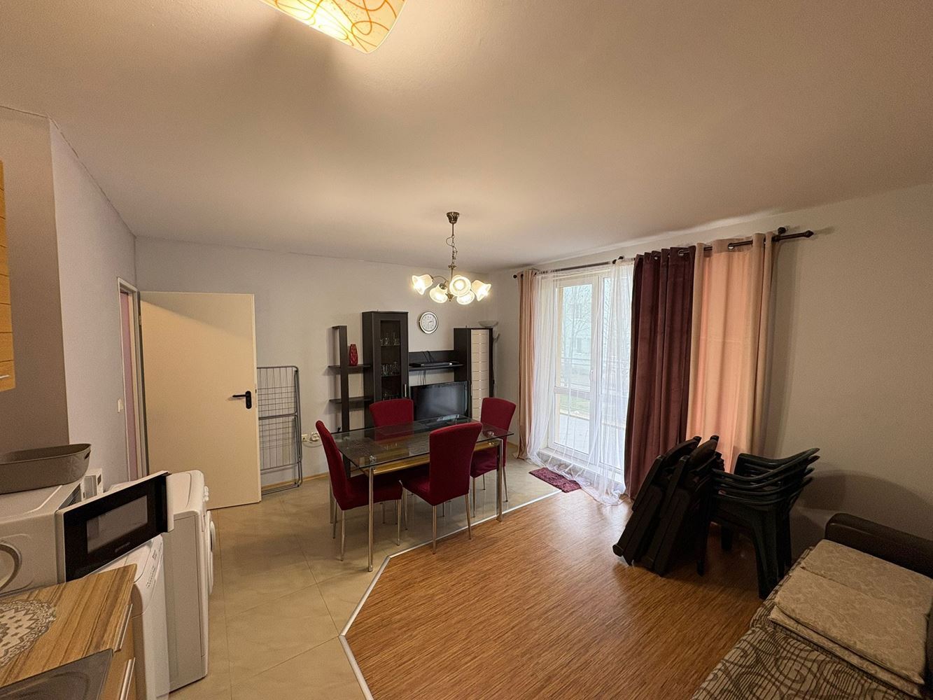 Жилището включва коридор, кухня с хол, спалня, баня с тоалетна, практичен склад и голяма тераса, която предлага прекрасно място за отдих, сутрешно кафе или вечерен релакс. Юго-източното изложение осигурява изобилие от естествена светлина през целия ден, като същевременно създава уютна и приветлива атмосфера във всички помещения.