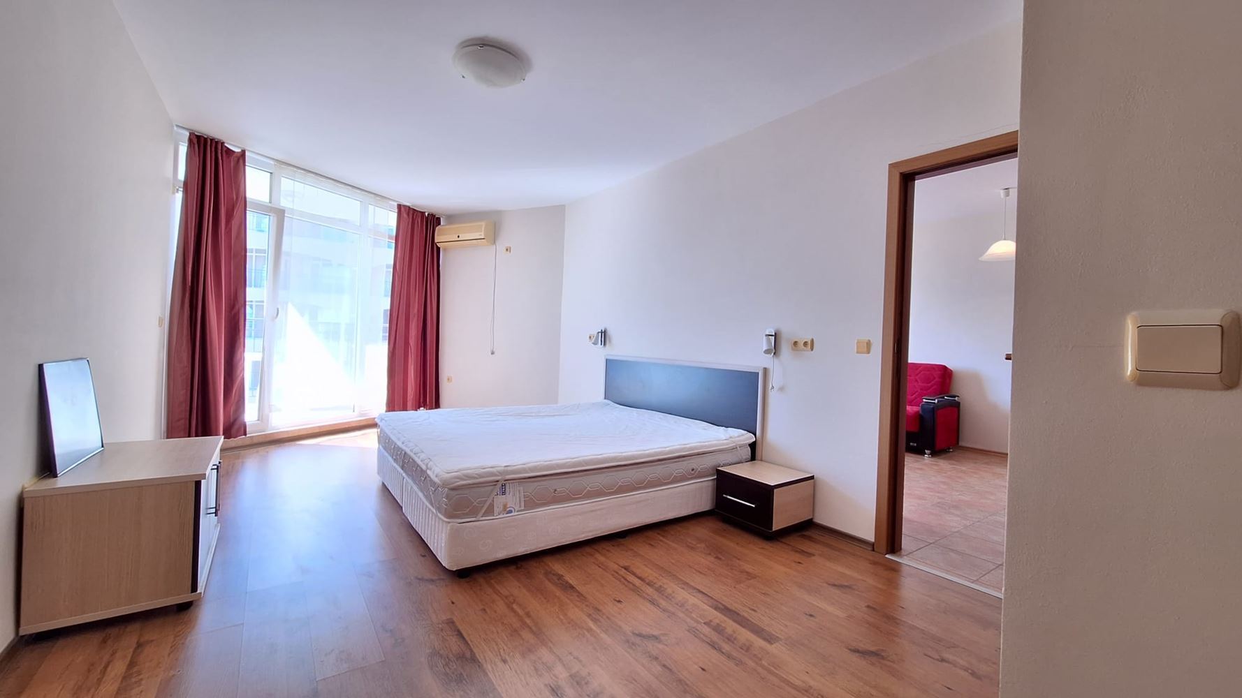 Представяме ви изключително атрактивен двустаен апартамент с площ от 84 кв.м, разположен в комплекс на първа линия в гр. Ахелой. Имотът се намира в тих и спокоен район, далеч от градския шум, като същевременно предлага впечатляваща гледка към морския залив, която създава усещане за пълноценна почивка и хармония с природата. Апартаментът е светъл, уютен и просторен, разположен на трети етаж в сграда с асансьор. Продава се напълно и качествено обзаведен и оборудван, готов за незабавно ползване или отдаване под наем. Разпределението е изключително функционално и включва просторна дневна с кухня, антре, комфортна спалня, две бани с тоалетни и две тераси, от които се разкрива невероятна морска панорама. Наличието на две бани е рядко предимство за двустаен апартамент и допринася значително за удобството и практичността на жилището.