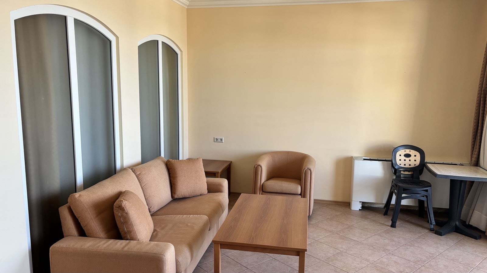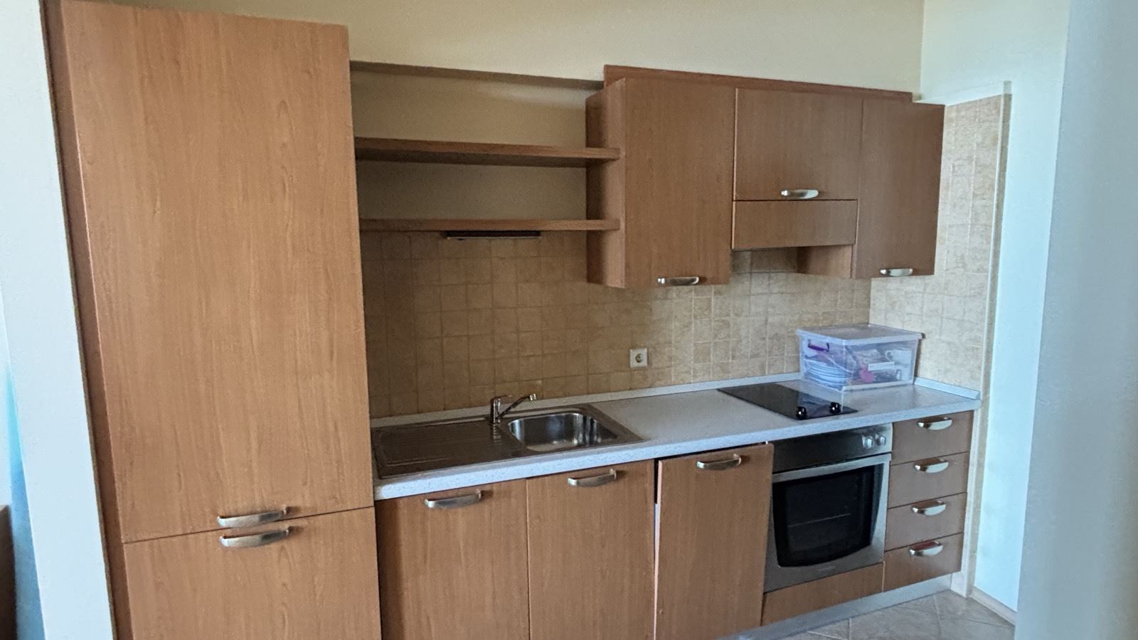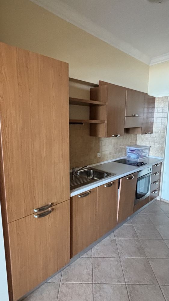 Жилището е разпределено функционално и удобно, като включва коридор, просторна дневна с кухненски кът, спалня, баня с тоалетна, дрешник и голяма тераса с изглед към морето. Интериорът е напълно обзаведен и оборудван, което позволява незабавно настаняване или отдаване под наем, без допълнителни разходи. Апартаментът впечатлява с добра осветеност, модерно обзавеждане и практично разпределение, осигуряващи комфорт и уют за собствениците.