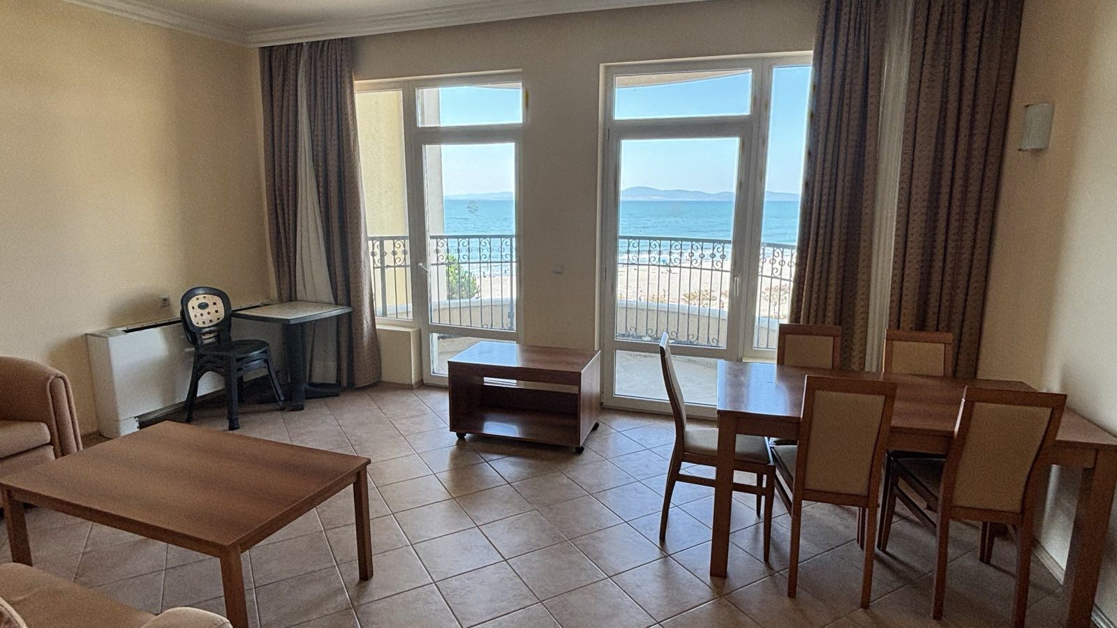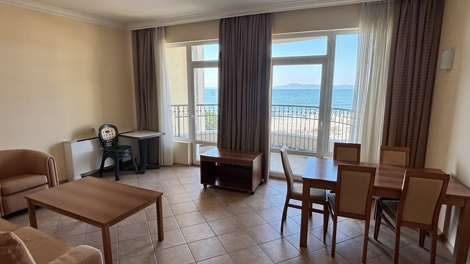 Просторен двустаен апартамент с панорамна морска гледка на първа линия в гр. Поморие