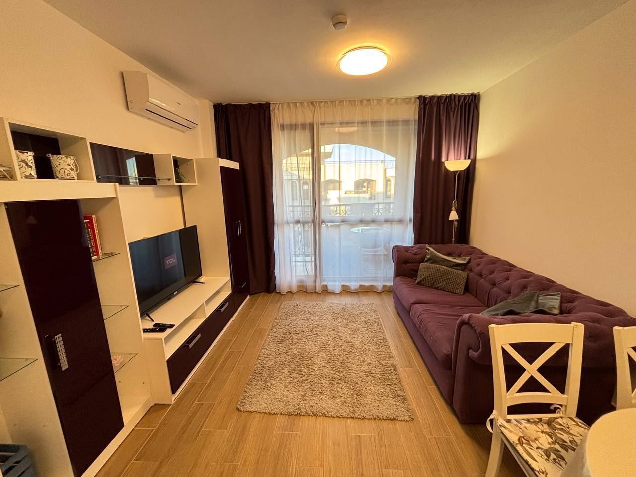 Предлагаме Ви двустаен апартамент с площ от 58 м², разположен на шести етаж в изключително модерен и многофункционален комплекс, създаден да отговори на всички нужди на своите обитатели и гости. Имотът се предлага напълно обзаведен и оборудван, готов за незабавно ползване, независимо дали търсите ваканционно жилище, постоянно пребиваване или сигурна инвестиция. Апартаментът впечатлява с усещане за комфорт и практичност, а цялостната концепция на комплекса може с право да бъде описана като „град в града“. Всяко пространство е красиво проектирано и прецизно изпълнено, като е обърнато внимание и на най-малкия детайл, за да се осигури високо качество на живот както за постоянно живеещите, така и за почиващите.