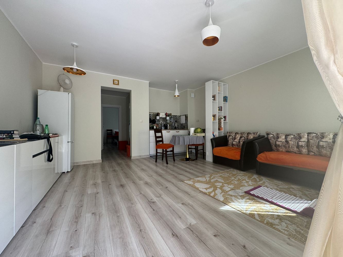 Жилището се намира на втория етаж от четириетажна, добре поддържана сграда и е с обща площ от 55 м². Разпределението е функционално и комфортно: просторна всекидневна с кухненски бокс и трапезария, удобна спалня, баня с тоалетна и тераса. Планировката позволява лесна организация на пространството, а естествената светлина създава усещане за уют и простор. Апартаментът се продава напълно обзаведен и оборудван – готов е за незабавно нанасяне или за бърз старт при отдаване под наем. Кухненският бокс разполага с необходимите електроуреди, дневната е обзаведена с удобна мека мебел, а спалнята – с качествено легло и гардероб. Довършителните решения са в неутрални, спокойни тонове, подходящи за различни стилове на интериор. Терасата е приятен акцент – идеално място за утринно кафе или вечерна почивка на открито. Банята е в много добро състояние, с модерна санитария и вентилация. Общите части на сградата са поддържани, с контролиран достъп и спокойна жилищна среда.