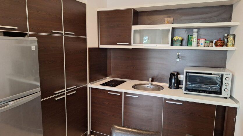 Апартаментът се състои от светла дневна с кухненски бокс, отделна спалня, баня с тоалетна и уютен балкон, който е идеален за сутрешно кафе или следобедно релаксиране на открито. Планировката е изключително практична, като позволява лесно обособяване на различни функционални зони и прави имота подходящ както за целогодишно живеене, така и за ваканционно ползване или инвестиция под наем.