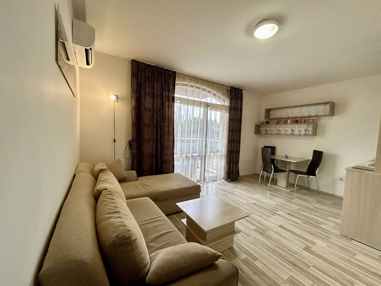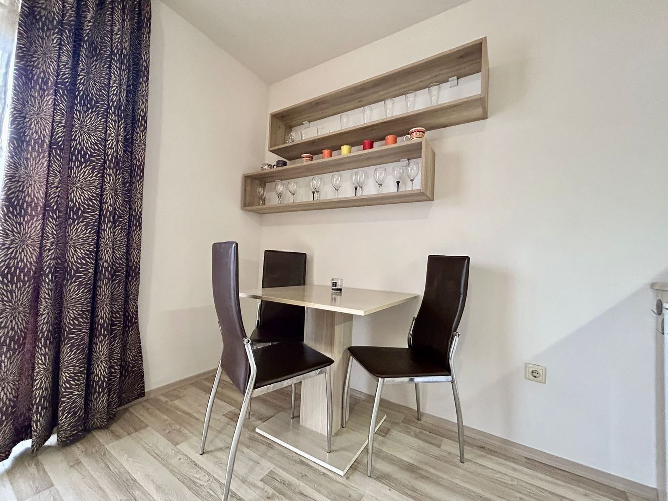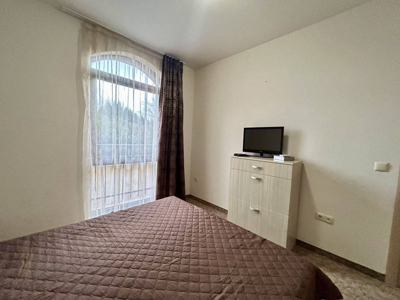 Представяме ви двустаен апартамент с площ от 43,12 м², разположен в затворен комплекс в зелена и спокойна част на Слънчев бряг. Имотът се намира на втори етаж и предлага тишина и уют, като същевременно е близо до всички удобства на курорта – ресторанти, магазини, забавления и развлекателни атракции. Апартаментът е напълно обзаведен и готов за целогодишно обитаване. Просторната всекидневна е сърцето на дома, където можете да се отпуснете, да посрещате гости или да прекарвате време със семейството. Голямата спалня осигурява комфорт и спокойствие, а банята с тоалетна е оборудвана с всички необходими удобства. От балкона се открива приятна гледка към тиха част на комплекса, което позволява да се насладите на спокойствието и зеленина наоколо.