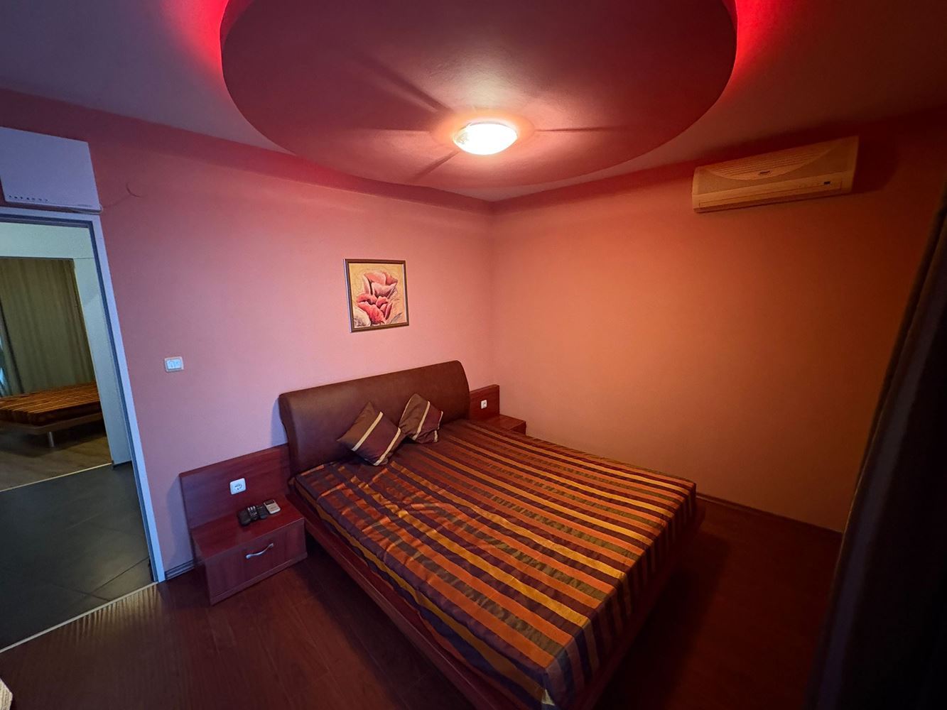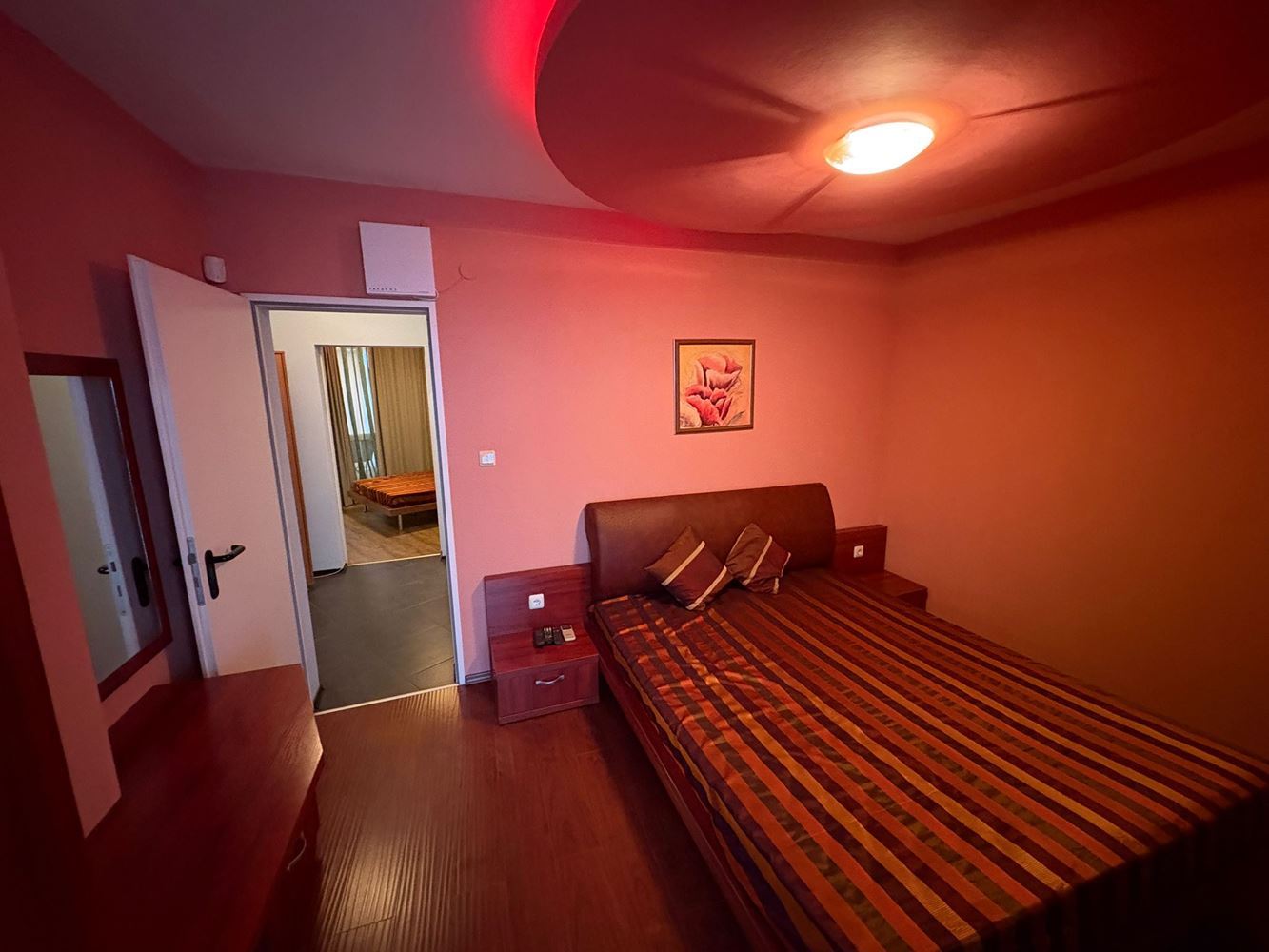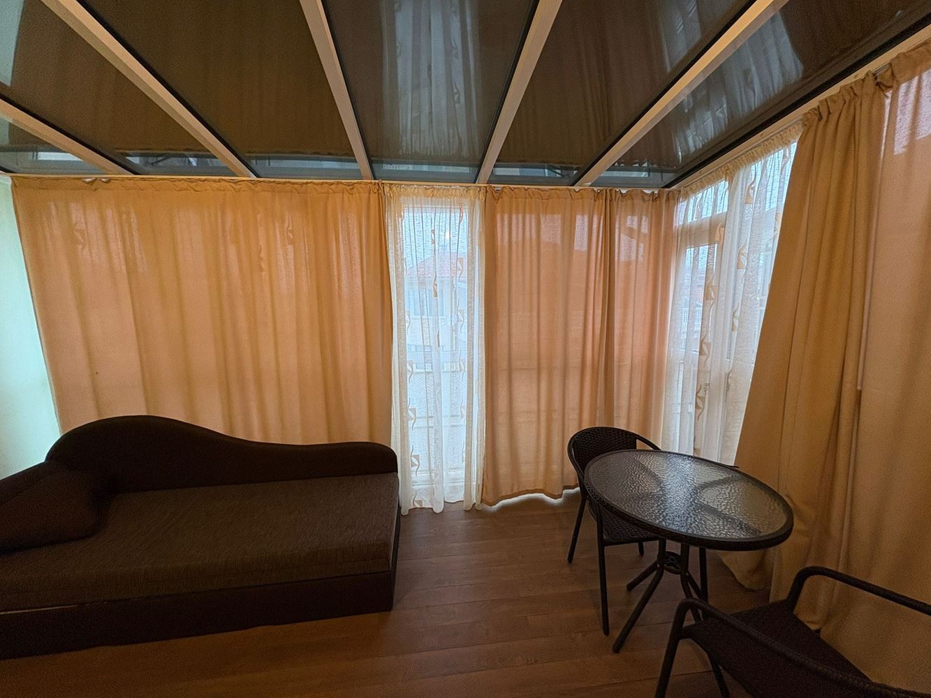 Една от спалните е оборудвана с дрешник, което добавя удобство и място за съхранение, а кабинетът е с дограмаи обособен като зимна градина, която е притежава малка тераса. В тази стая има достъп от едната от спалните, което създава възможност за използване на кабинета като работен кът, детска стая или допълнителна спалня, според нуждите на новите собственици. Големият покрит балкон е отлично място за сутрешно кафе, вечерен релакс или за събиране с приятели.