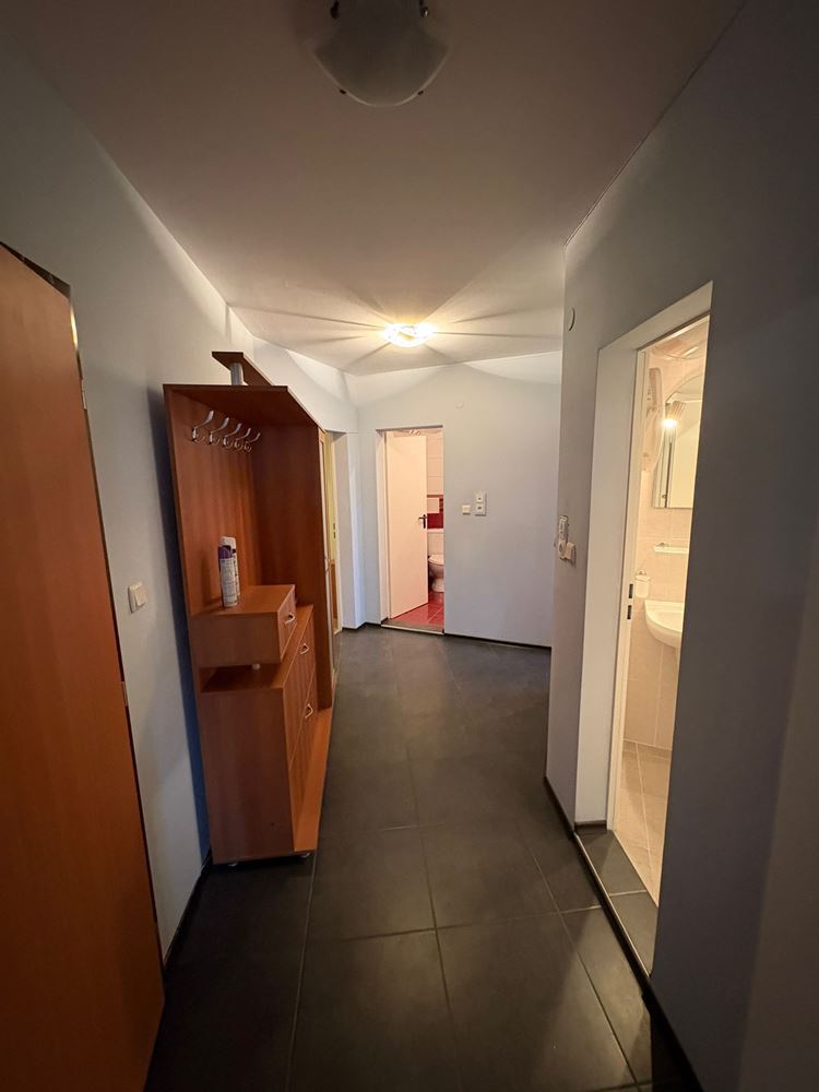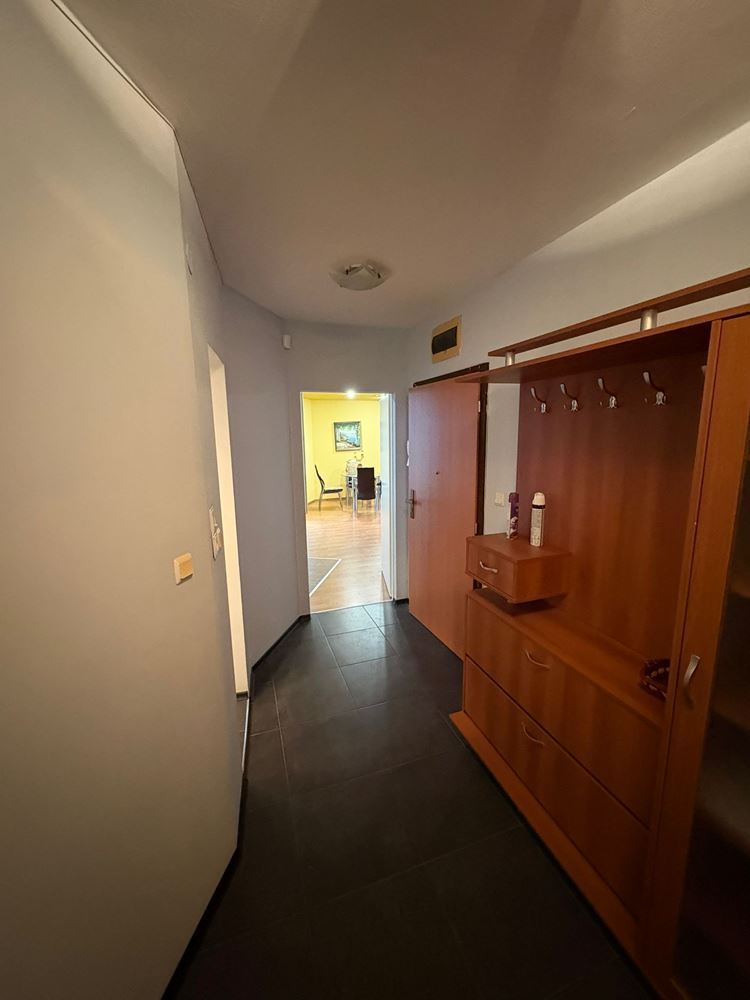 Жилището е разположено в добре поддържана сграда с асансьор и е с функционално разпределение, което го прави подходящо както за семейство, така и за инвеститори, търсещи имот за отдаване под наем. Апартаментът се състои от коридор, две бани с тоалетни, просторна дневна с кухненски бокс, две спални, кабинет и голям покрит балкон, който осигурява допълнително пространство за отдих и релакс.