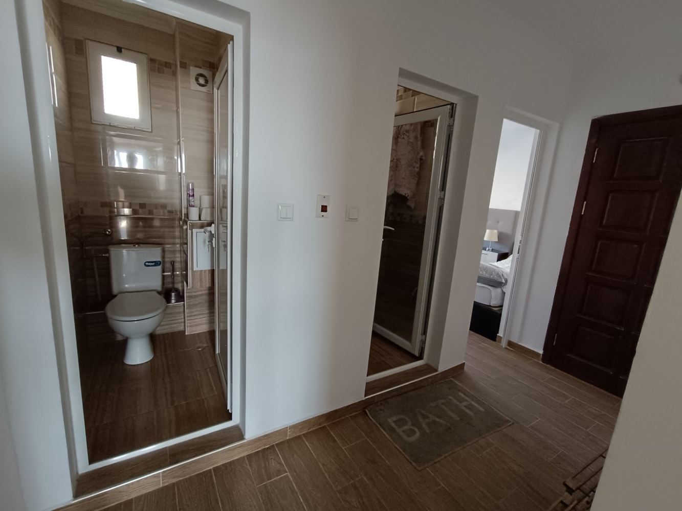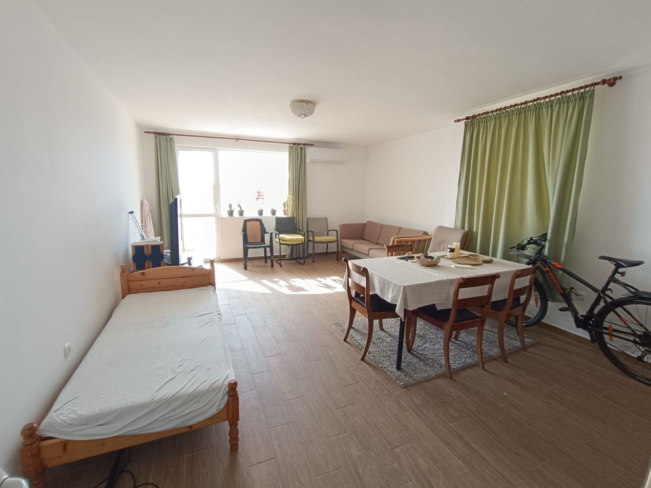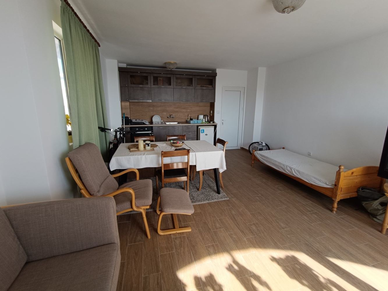 Светли и просторни помещения създават усещане за свобода и комфорт. Дневната зона е достатъчно голяма, за да бъде организирана като основно място за отдих и семейни събирания, а кухненската част може да бъде оформена според вашите предпочитания – като отделна кухня или като част от общата дневна зона. Двете спални са удобни и спокойни, идеални за пълноценен сън и релакс. Апартаментът разполага с баня и тоалетна, както и допълнително пространство за коридор и зона за съхранение, което допринася за функционалността на жилището.