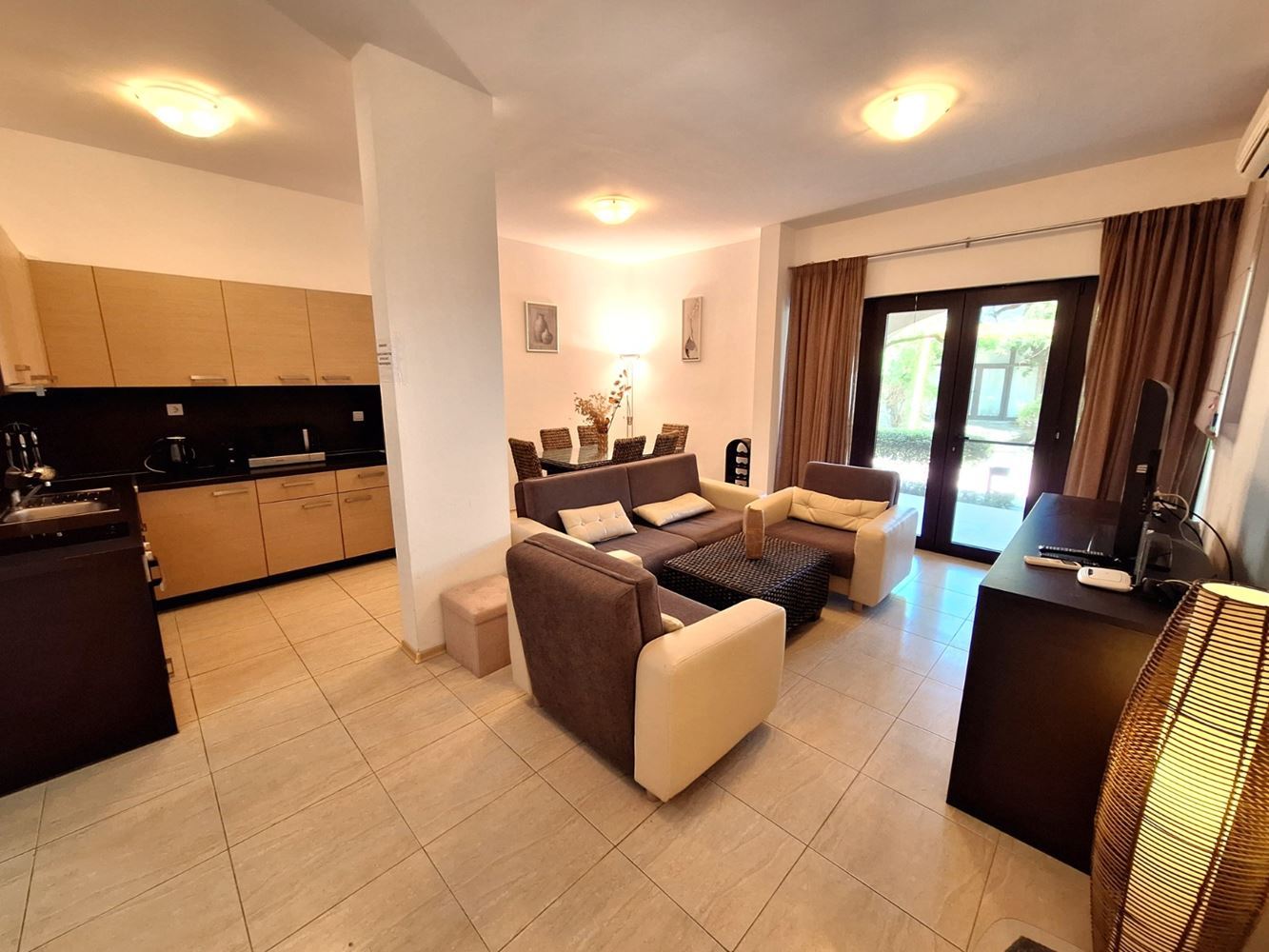 Представяме ви отличен тристаен апартамент с гледка към морето и парка, разположен в голям, утвърден комплекс на първа линия в района на Ахелой – място, което съчетава тишина, природа и висок стандарт на живот. Имотът е с обща площ 119 м² и се намира на партерен етаж, като разполага с отделен вход и собствен двор, което го доближава максимално до усещането за самостоятелна къща край морето.