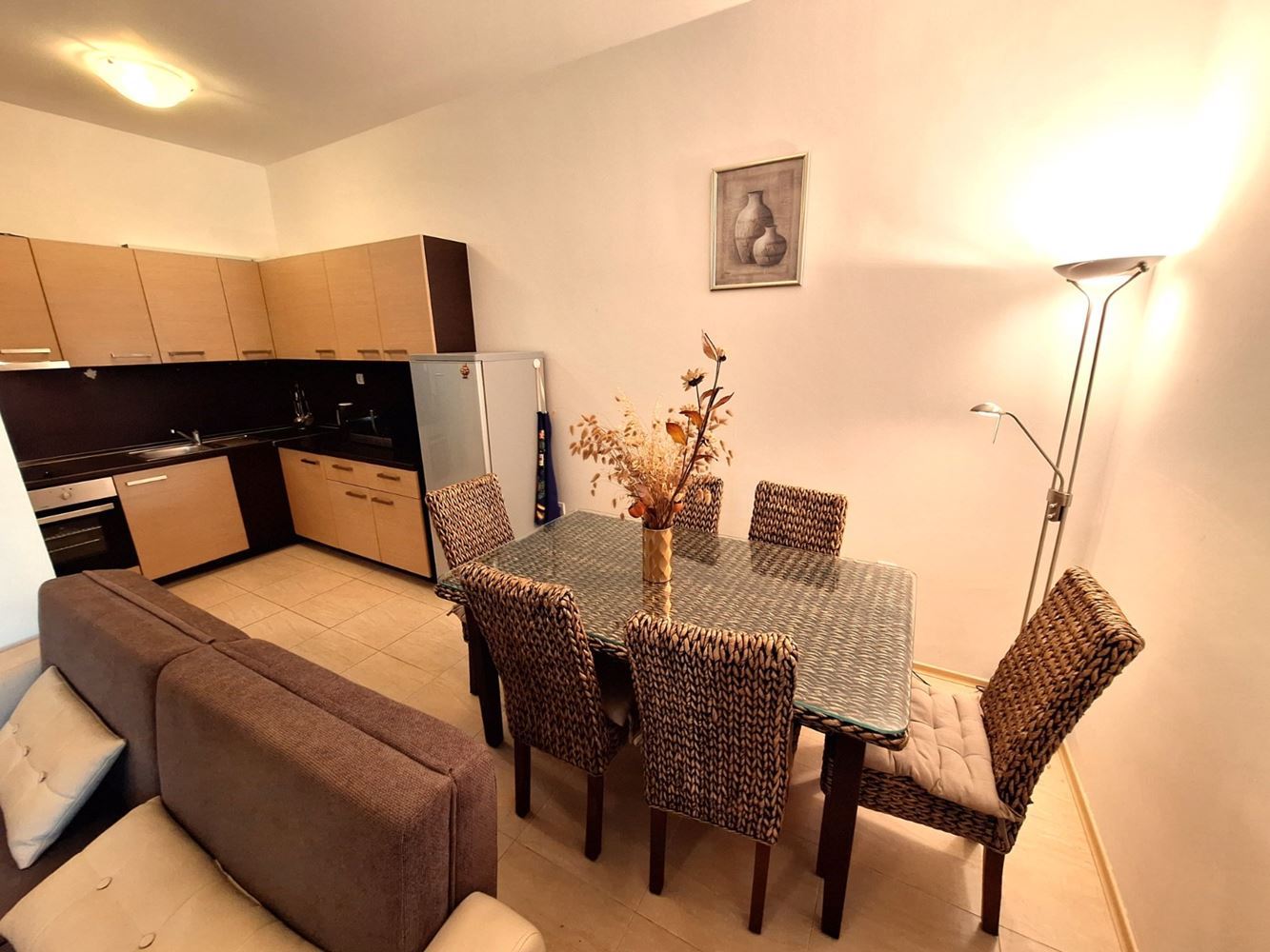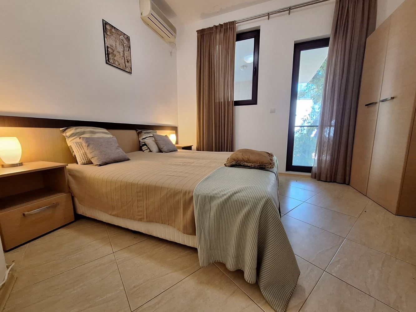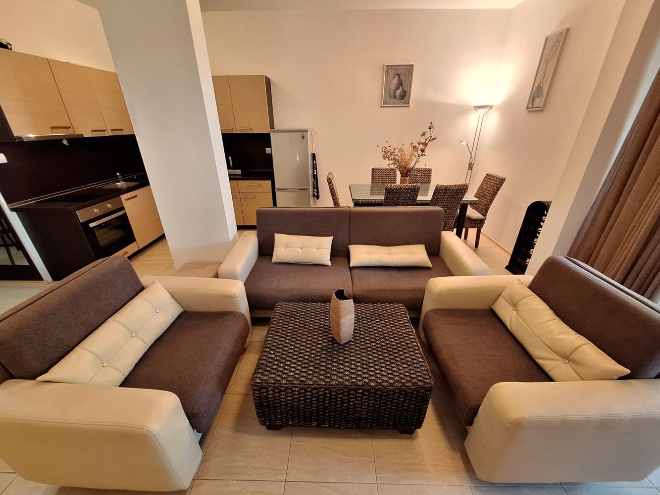 Жилището разполага с две отделни и уютни спални, подходящи както за семейство, така и за гости. Банята е оборудвана с вана, а допълнителната тоалетна за гости осигурява още по-голямо удобство. Вторият, по-малък балкон допълва функционалността на апартамента и предоставя допълнително лично пространство. Имотът се предлага напълно обзаведен, готов за незабавно нанасяне или отдаване под наем.