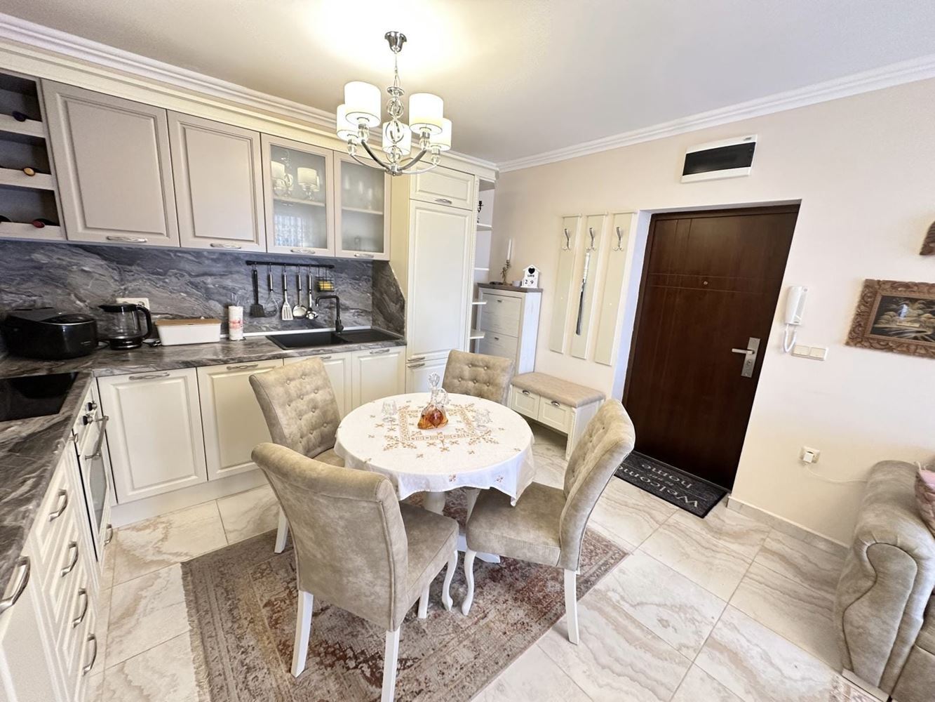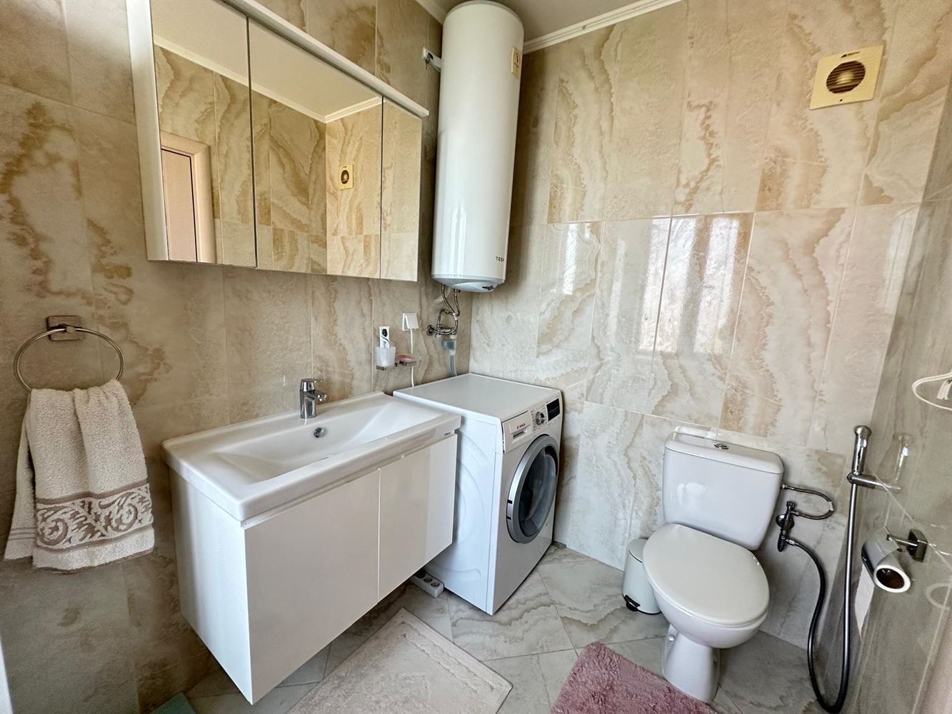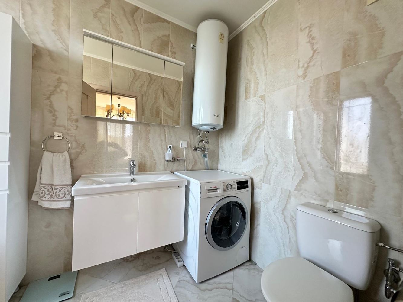 Жилището впечатлява с изключително функционално разпределение и уютна обстановка. Просторната всекидневна е идеална за релакс и семейни моменти, а напълно оборудваната кухня е готова да посрещне вашите кулинарни идеи. Двете светли и комфортни спални предлагат спокойствие и уединение, като са подходящи както за семейства, така и за гости. Апартаментът разполага с две модерни бани – едната с вана и прекрасен изглед към морето, а другата с удобна душ кабина. Двете тераси също разкриват очарователна морска гледка, идеална за сутрешно кафе или романтични вечери на открито.