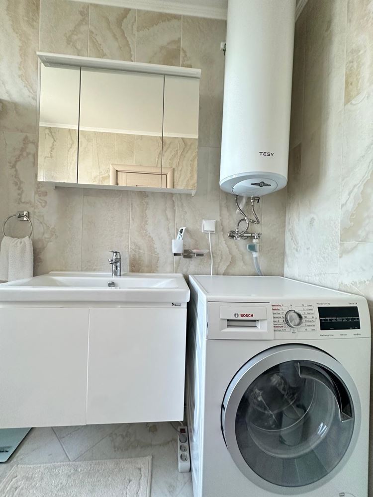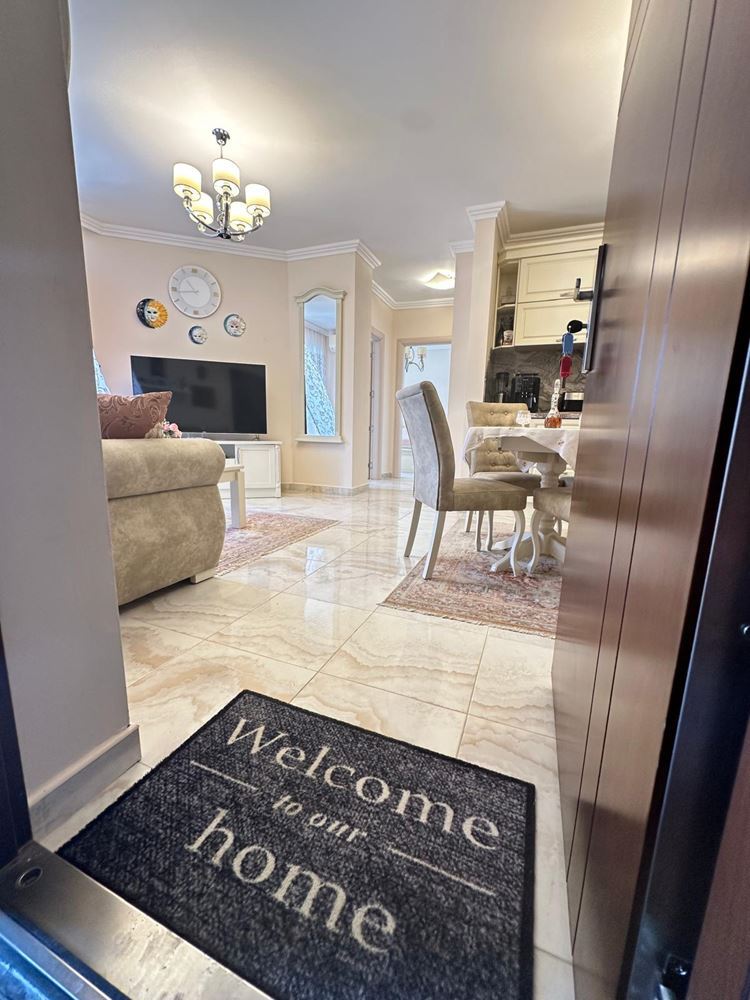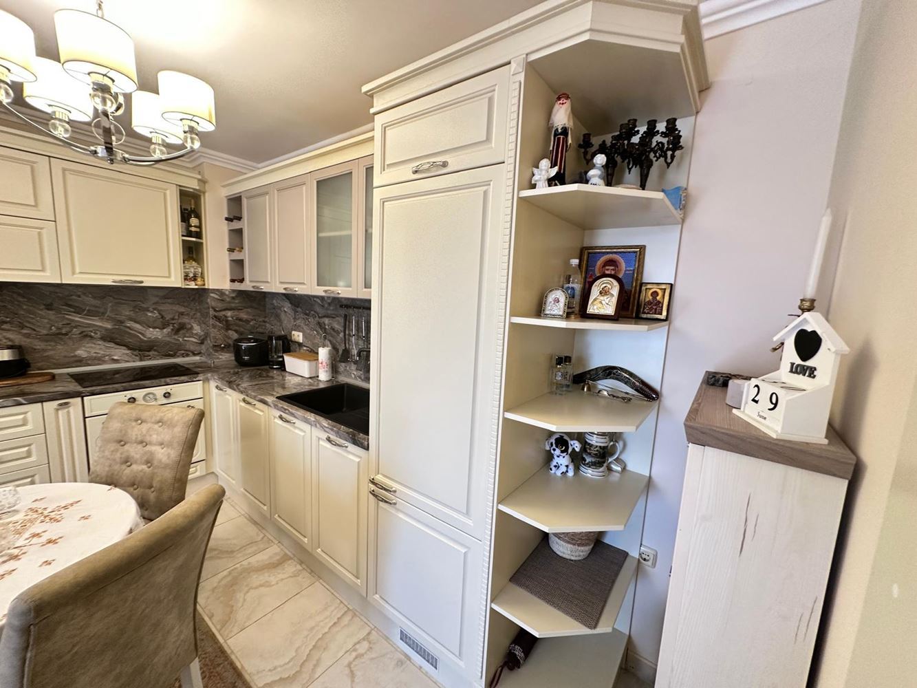 Жилището впечатлява с изключително функционално разпределение и уютна обстановка. Просторната всекидневна е идеална за релакс и семейни моменти, а напълно оборудваната кухня е готова да посрещне вашите кулинарни идеи. Двете светли и комфортни спални предлагат спокойствие и уединение, като са подходящи както за семейства, така и за гости. Апартаментът разполага с две модерни бани – едната с вана и прекрасен изглед към морето, а другата с удобна душ кабина. Двете тераси също разкриват очарователна морска гледка, идеална за сутрешно кафе или романтични вечери на открито.