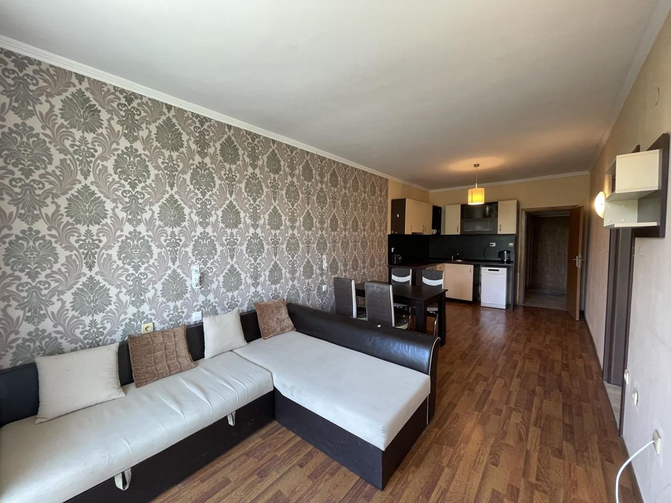 Апартаментът се продава с наличното обзавеждане и оборудване, което го прави напълно готов за нанасяне или отдаване под наем. Разпределението е практично и удобно – входно антре, просторна всекидневна с кухненска част, уютна спалня, втора спалня, подходяща и за офис или детска стая, санитарен възел и една тераса, която допринася за усещането за светлина и простор.