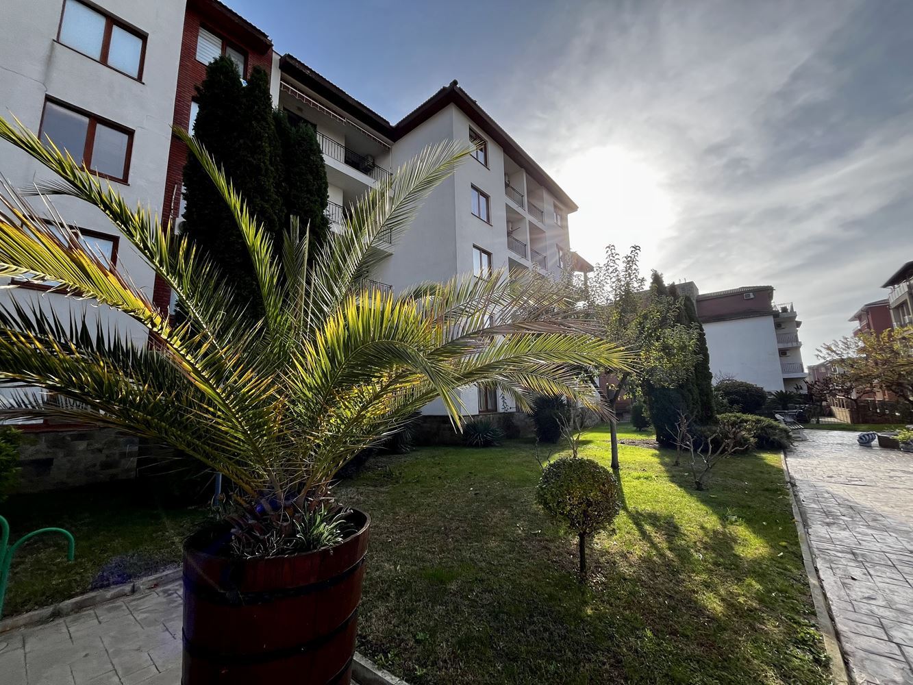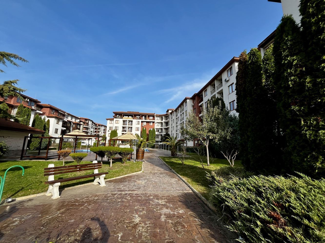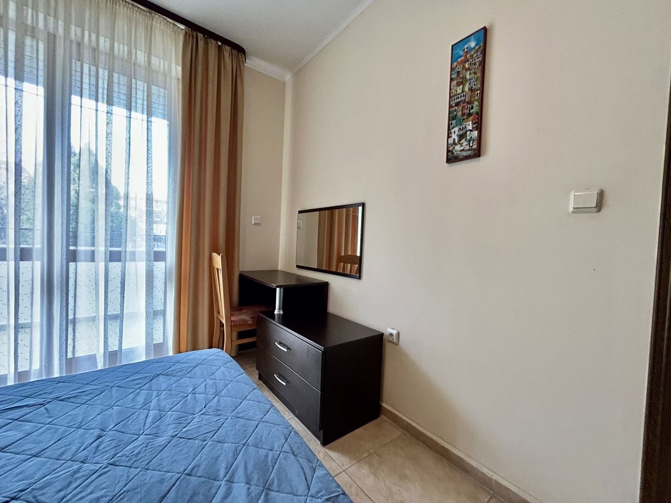 Този имот представлява перфектна възможност за семейство или инвеститор, търсещи комфортен, готов за живеене апартамент в комплекс с изглед към басейна, съчетан с удобства, практичност и приятна морска атмосфера.