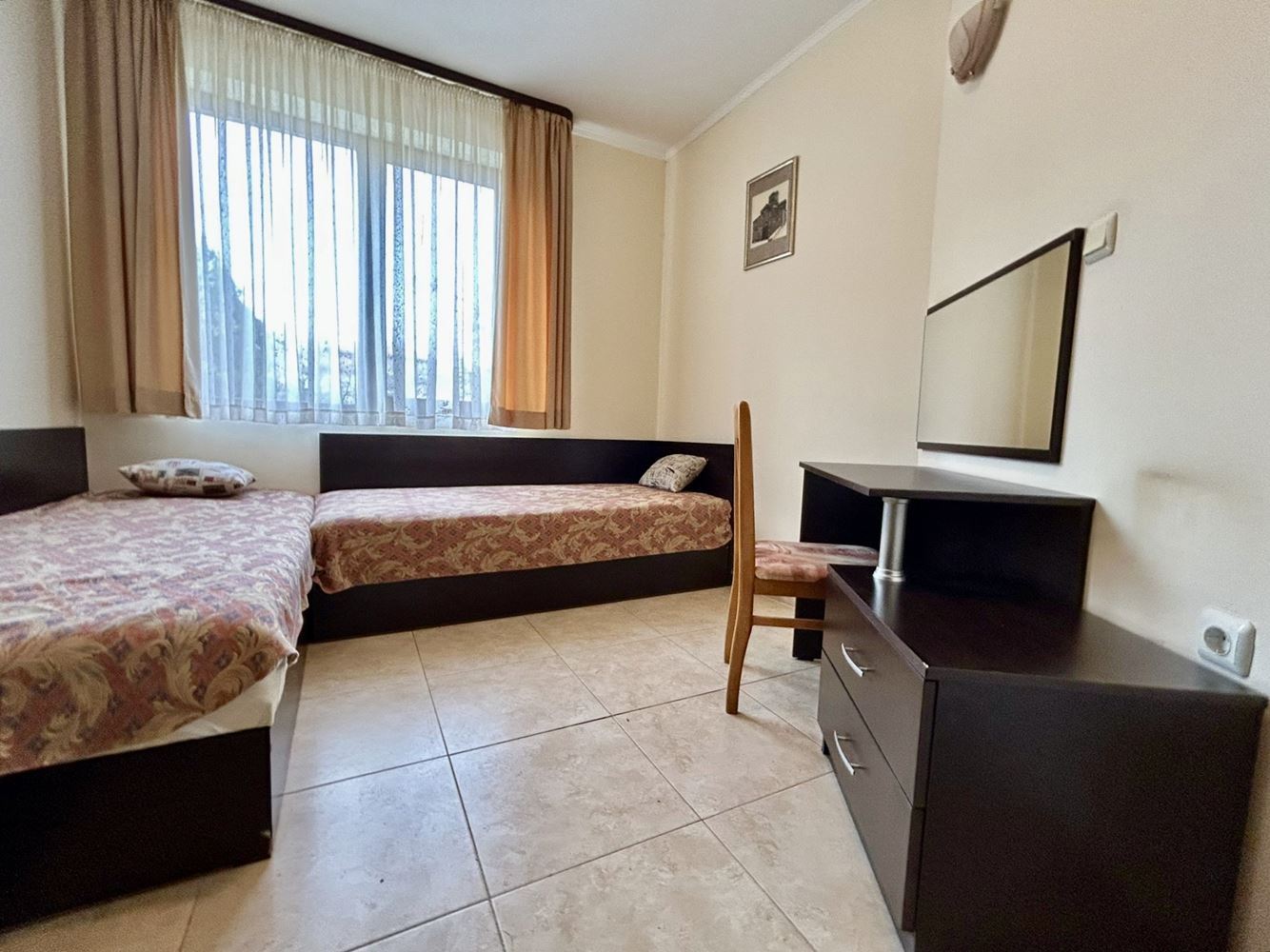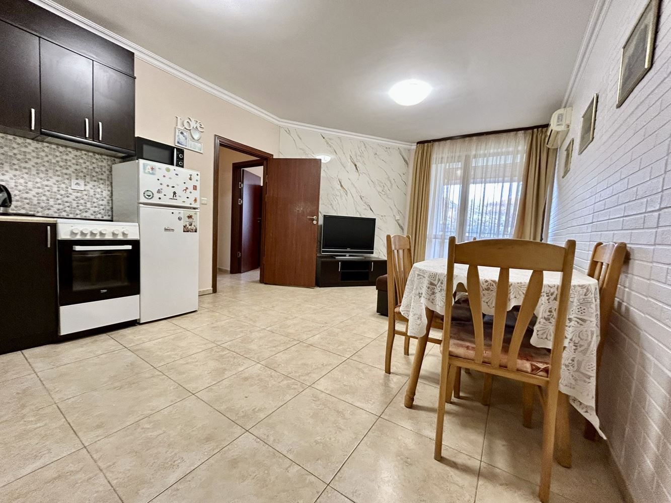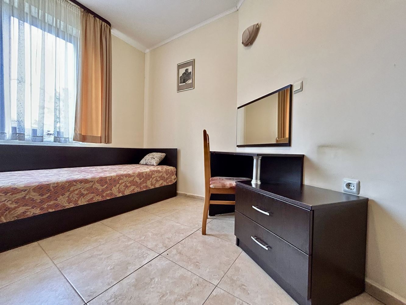 Този имот представлява перфектна възможност за семейство или инвеститор, търсещи комфортен, готов за живеене апартамент в комплекс с изглед към басейна, съчетан с удобства, практичност и приятна морска атмосфера.