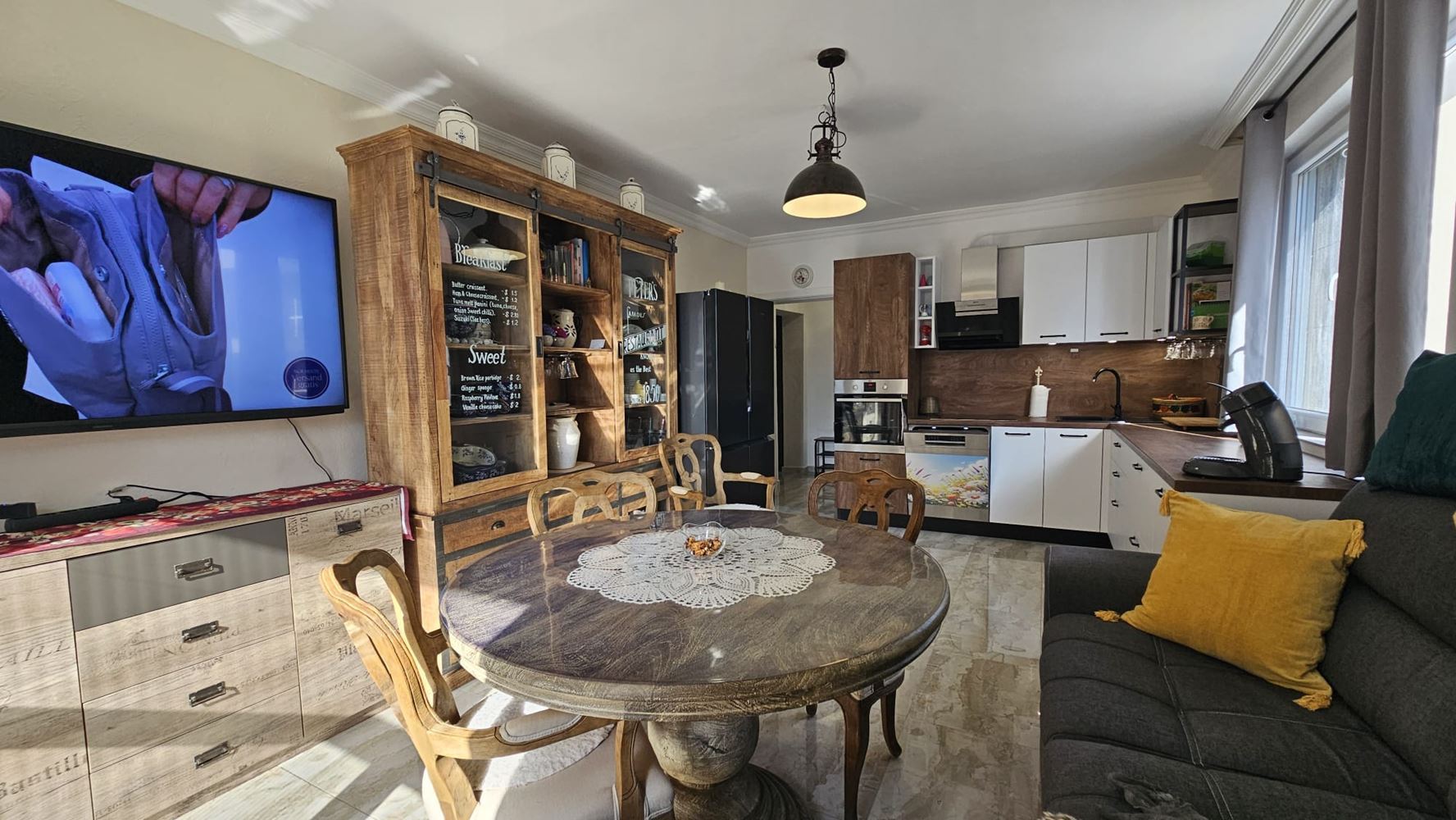 Представяме ви светъл и функционален тристаен апартамент с обща площ 101,8 м², разположен на втори етаж в уютен и добре поддържан комплекс в идеалния жилищен квартал „Камелия“ в Слънчев бряг. Сградата разполага с асансьор, а имотът се продава с чисто нови мебели и уреди – готов за нанасяне още днес. Разпределението е изключително удобно: входно антре, две дневни с кухни, една спалня, две бани и два балкона. Апартаментът представлява комбиниран апартамент, състоящ се от студио и двустаен, което осигурява гъвкавост – идеален е както за комфортно семейно обитаване, така и за инвестиция с възможност за обособяване на две самостоятелни зони за ползване или отдаване.