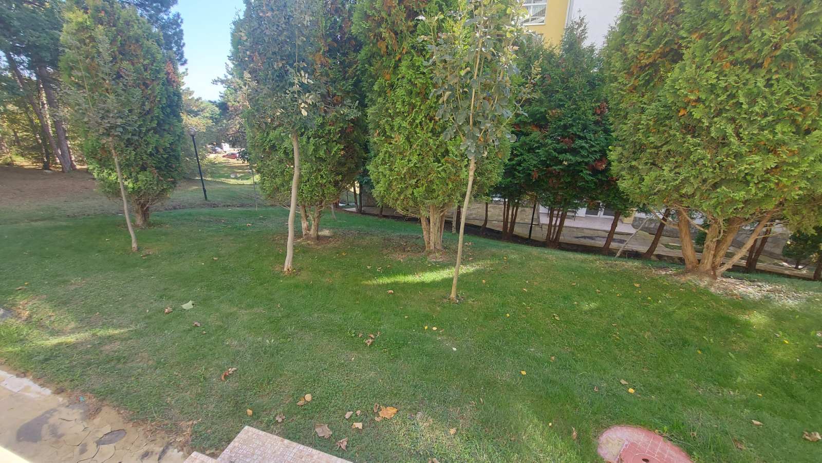 Просторно студио с изход към зелена морава и частична морска гледка