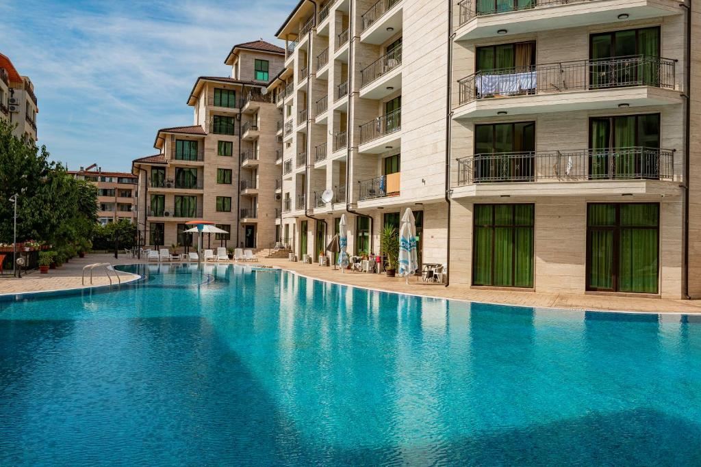 Жилището е функционално разпределено и включва просторна стая с кът за отдих и спане, кухненски бокс, баня с тоалетна и тераса, осигуряващи уют и комфорт. На територията на комплекса са изградени озеленени площи с алеи и места за почивка, лоби бар и рецепция, плувен басейн с детска секция, бар край басейна, ресторант и магазини, създаващи отлични условия за релакс и забавление.
