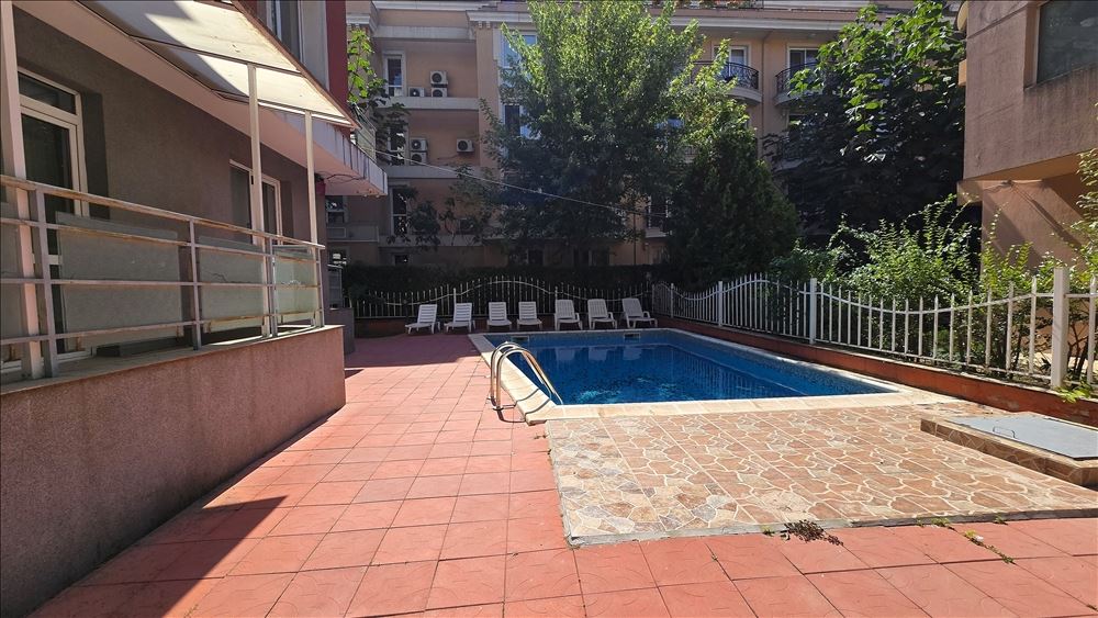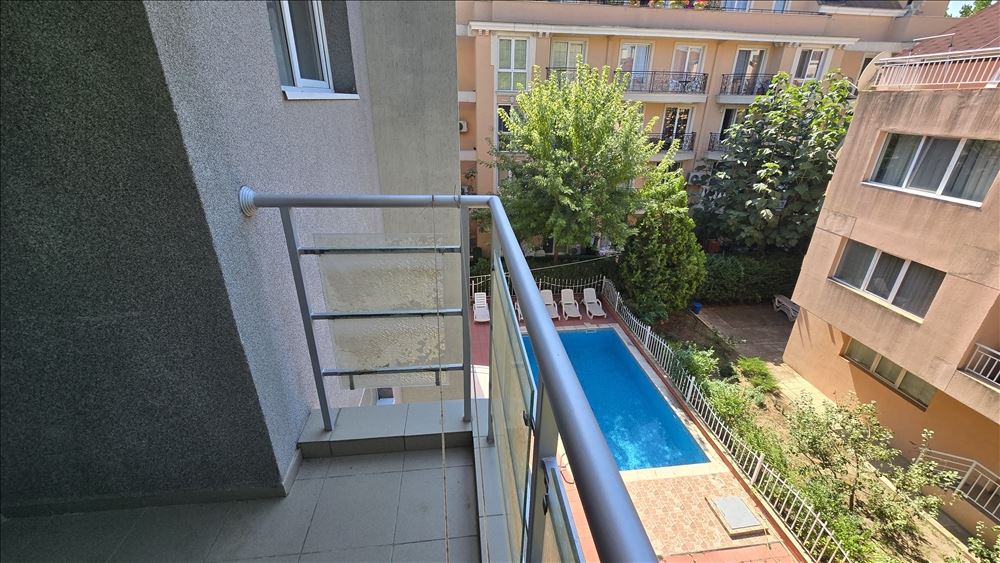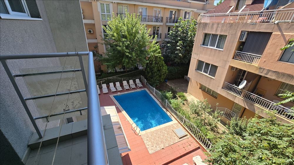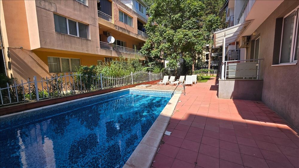 Комплексът предлага приятна и сигурна среда за почивка и живеене. На разположение на собствениците и гостите е басейн с комфортна зона за релакс под чадъри и шезлонги. Денонощна охрана осигурява спокойствие и безопасност, така че престоят ви да бъде максимално безгрижен. Сградата е въведена в експлоатация и разполага с Акт 16. Локацията е истинско предимство: тих и добре устроен район, в който цялата необходима инфраструктура е на пешеходно разстояние — ресторанти, кафенета, магазини, супермаркети, аптеки, малки бутици и сувенирни магазини, банкови клонове, обменни бюра, както и детска градина. Всичко, от което се нуждаете за комфортен престой или ежедневие, е на една крачка.