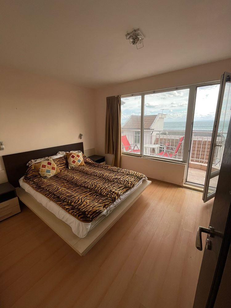 Предлагаме за продажба светъл и функционален двустаен апартамент с впечатляваща гледка към морето, разположен в най-търсения район на гр. Несебър – кв. Аурелия. Имотът е на първа линия до плажа, с обща площ 65 м2 на четвъртия предпоследен етаж, без асансьор. Жилището предлага удобно и практично разпределение: входно антре, просторна дневна с място за кухненски бокс и трапезария, самостоятелна спалня, баня с тоалетна и приятна тераса. От балкона се открива красива панорамна гледка към морето – идеално място за сутрешно кафе или вечерна чаша вино с плискането на вълните на заден фон.