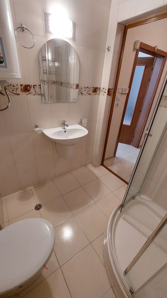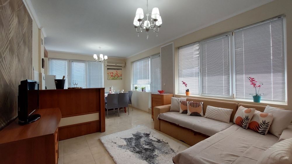 Прекрасен двустаен апартамент в централната част на град Поморие, само на 200 метра от морето, е привлекателно предложение за тези, които търсят комфортно и модерно жилище. Апартаментът се намира само на 200 метра от морето. Това осигурява лесен достъп до плажа и близост до много кафенета, ресторанти и магазини. Жилището предлага просторно разпределение и площ, което осигурява комфортно жилищно пространство. Състои се от коридор, голяма всекидневна с кухня и трапезария, спалня, две бани и просторен балкон с обособени зони, от които да се наслаждавате на гледката и свежия въздух. Напълно обзаведен е с качествени съвременни мебели, които му придават стил и комфорт. Скъпоструващите ремонти гарантират високо качество на завършека. Липсата на такси за обслужване може да бъде привлекателен фактор за купувачите, тъй като спестява допълнителни разходи. С отделни партиди за ток и вода, което ви дава възможност да контролирате разходите си, за да избегнете неочаквани изненади в сметките.