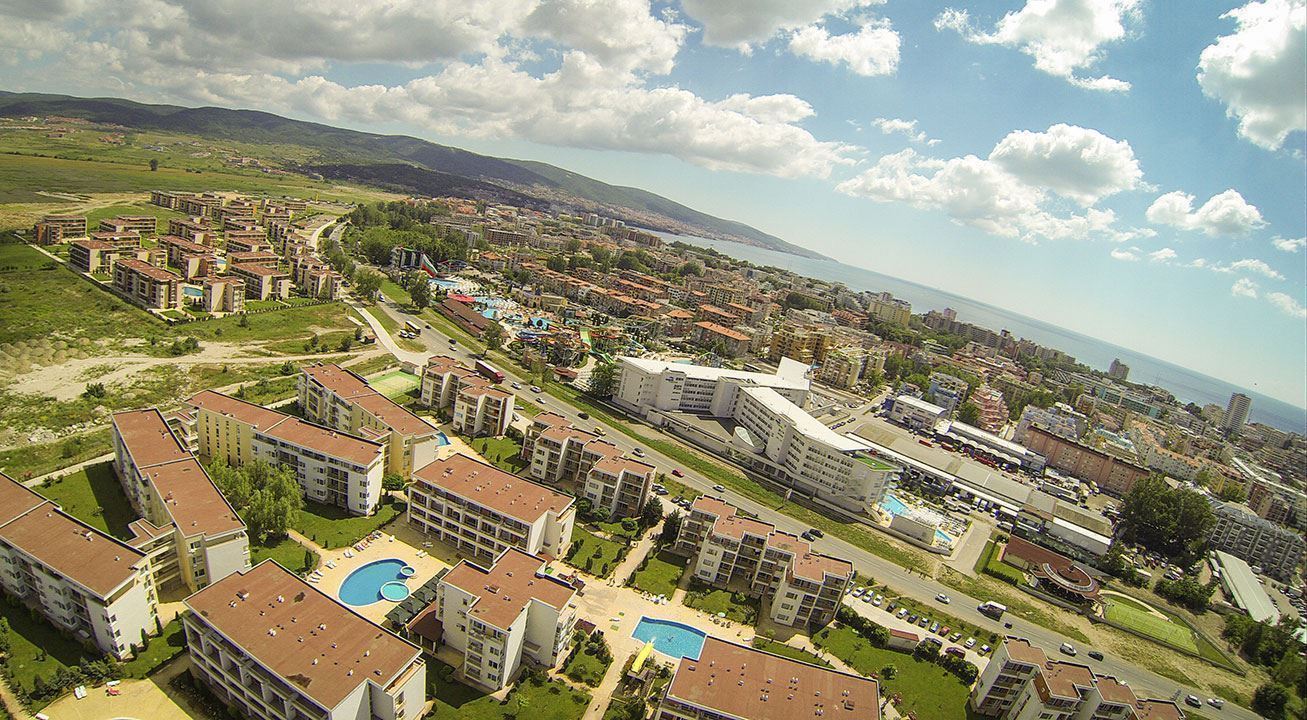 Самият комплекс заема централно място в Слънчев бряг. В близост се намират Аква-парк и голям супермаркет, които осигуряват лесен достъп до необходими удобства. Жилищният комплекс се състои от ниски сгради, равномерно разпределени по цялата площ, което създава атмосфера на уют и комфорт. Собствениците на апартаменти имат достъп до множество плувни басейни, ресторант, детски площадки, тенис кортове, спортна площадка за фитнес на открито, както и обширна зона за колоездене.