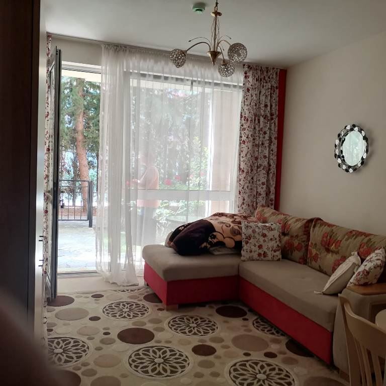 Представяме на вашето внимание очарователно студио, идеално разположено в сърцето на Слънчев бряг. С обща площ от 31 м2, този уютен имот предоставя всички удобства за комфортен и спокоен живот на морето. Студиото се намира на партерния етаж и разполага с една просторна стая, която съчетава дневна и спалня – стилно и функционално обзаведена. Пълното обзавеждане ви позволява да се настаните веднага без никакви допълнителни ангажименти. Едната баня е оборудвана с всички необходими удобства. От терасата има излаз към живописния двор, където може да се насладите на свежия въздух и красивата природа.