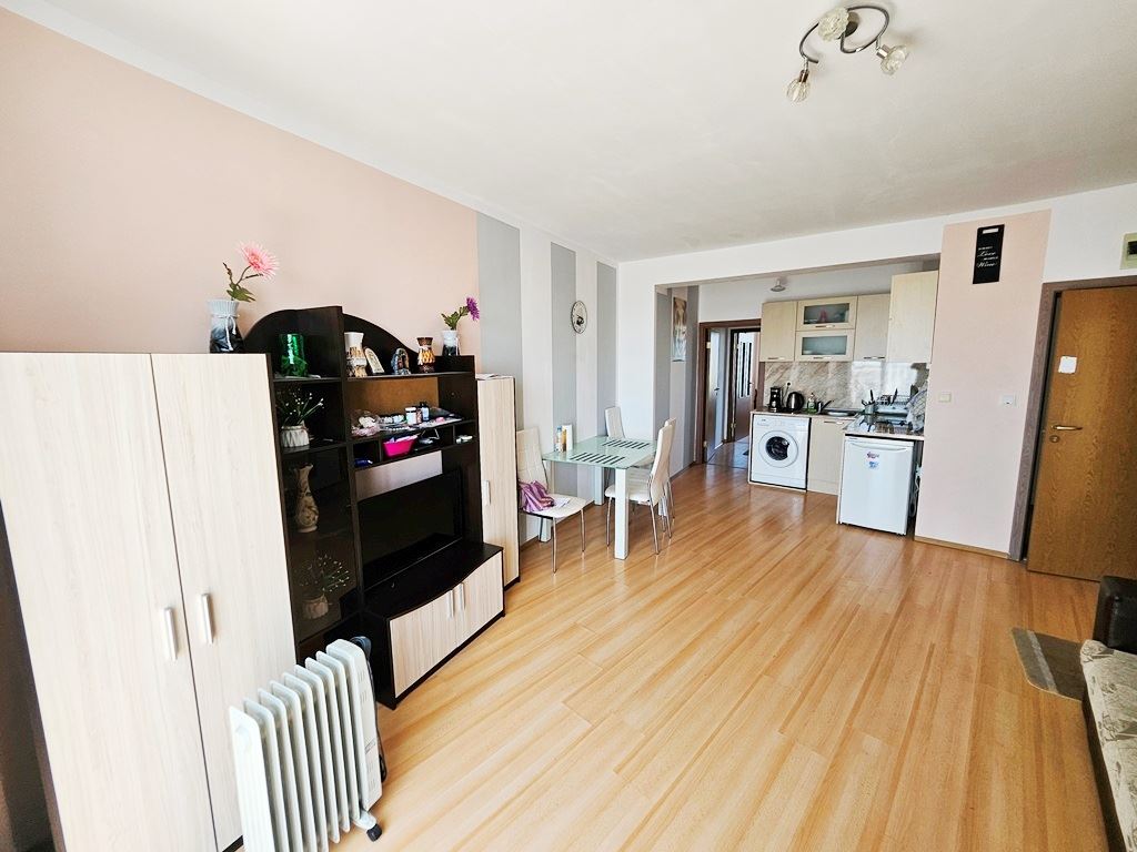 Представяме ви изключителна възможност за живеене или инвестиция във ваканционно жилище - уютен двустаен апартамент на Слънчев бряг. Разположен на последния етаж на модерен комплекс, този уютен апартамент с обща площ от 60 м2 предлага всичко необходимо за комфортен престой. Основни характеристики на имота включват: уютен хол с отворен план, който прелива в кухненския кът; светла и приветлива спалня, идеална за отпускане след дълъг ден на плажа; обзаведена баня с всичко необходимо и уютен балкон, от който може да се насладите на приятната атмосфера и свежия въздух