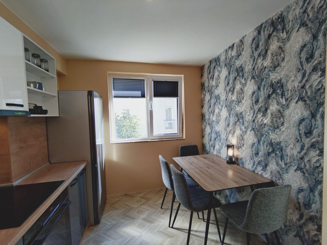 Имотът е изцяло обзаведен с чисто нови мебели и висок клас електроуреди – готов за нанасяне веднага, без допълнителни инвестиции. Югоизточното изложение осигурява много естествена светлина и топлина, а разпределението и ориентацията правят апартамента изключително топъл и енергоефективен. Сградата е изпълнена с материали и марки от най-висок клас и разполага с асансьор и отлично поддържани общи части. Локацията съчетава предимствата на тих морски квартал с удобната инфраструктура на Бургас: плаж и крайбрежна зона на пешеходно разстояние, бърз достъп до градски транспорт, търговски обекти и ключови пътни артерии. Имотът е подходящ както за целогодишно обитаване, така и като инвестиция с отличен потенциал за краткосрочно или дългосрочно отдаване под наем.