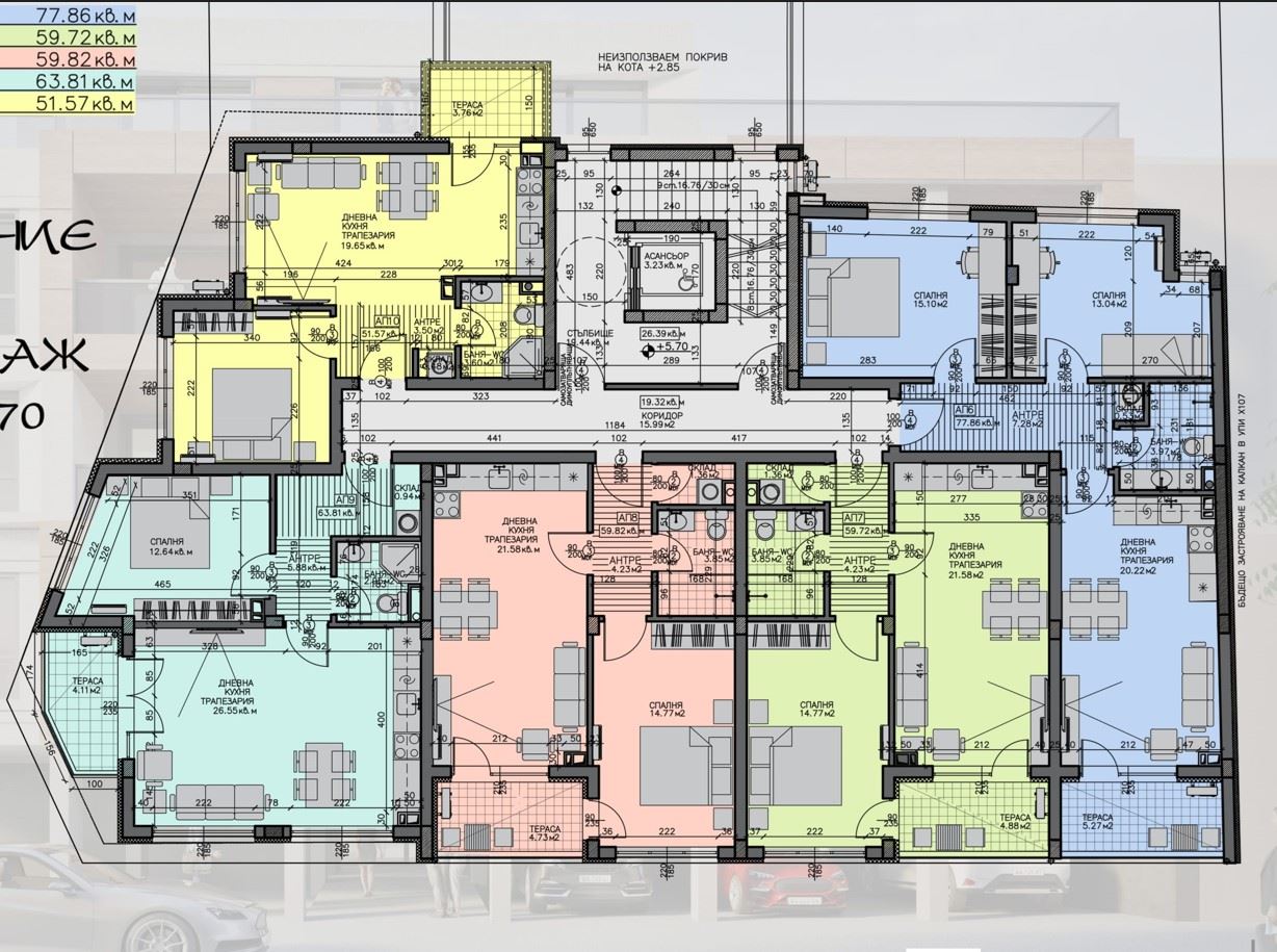 Представяме ви просторен двустаен апартамент, разположен на трети етаж в нова жилищна сграда с модерна визия, съчетаваща стил, качество и функционалност. Имотът се намира в един от най-зелените, комуникативни и предпочитани райони на гр. Бургас - ж.к. „Зорница“, който предлага спокойна жилищна среда, отлична инфраструктура и бърз достъп до всички удобства на града. Жилището е с площ от 76,68 м² и западно изложение, което осигурява топла следобедна светлина и уютна атмосфера в дома. Апартаментът е проектиран с мисъл за удобството на съвременния начин на живот и предлага функционално разпределение, включващо дневна с кухня, комфортна спалня, баня с WC, антре, складово помещение и тераса – идеално пространство за отдих на открито.