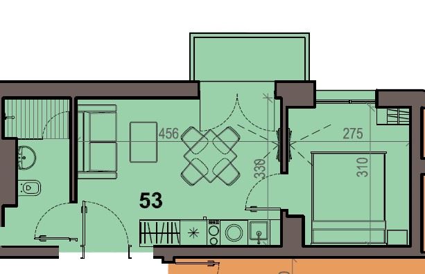 Жилището е разположено на пети жилищен етаж и разкрива великолепна морска гледка. С обща площ от 43.52 м2, апартаментът е функционално организиран: всекидневна с място за кухненски бокс, една самостоятелна спалня, удобна баня с тоалетна и едно балконче – перфектното място за сутрешно кафе с поглед към синевата. Югозападната ориентация осигурява изобилие от естествена светлина и приятен следобеден комфорт.
