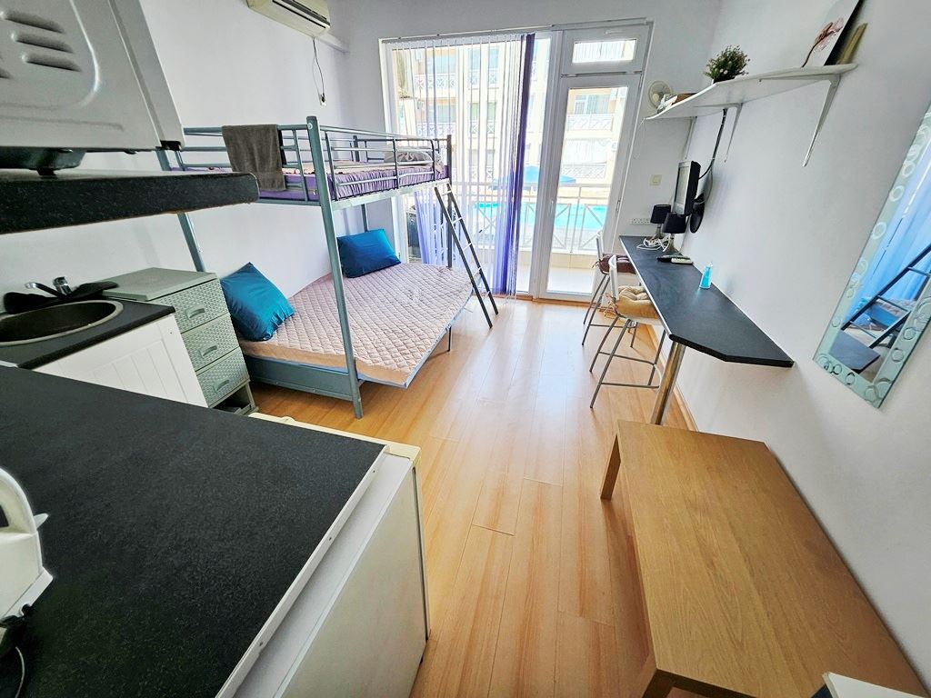 Слънчево студио с изглед към басейна в района на Слънчев бряг – идеално за почивка и инвестиция