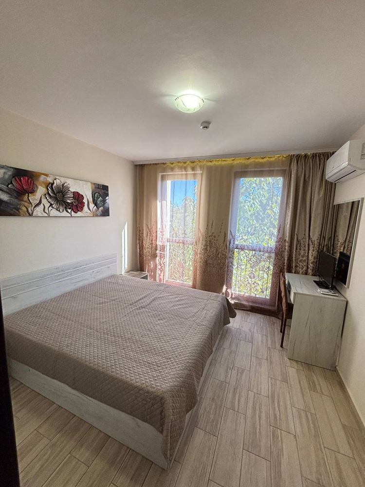Представяме Ви уютен и функционален апартамент с една спалня, разположен в елитен комплекс с отлична инфраструктура и предпочитана локация в курорта Слънчев бряг. Имотът се намира на втори етаж и е с обща площ от 58 м², като разпределението му е внимателно проектирано, за да осигури комфорт както за ваканционно ползване, така и за целогодишно обитаване. Апартаментът се състои от антре, просторно и светло дневно пространство с обособена кухня, уютна спалня, баня с тоалетна и тераса, подходяща за сутрешно кафе или вечерен отдих. Жилището се предлага напълно обзаведено и оборудвано с качествени мебели и домакински уреди, което позволява незабавно нанасяне или отдаване под наем без необходимост от допълнителни инвестиции.