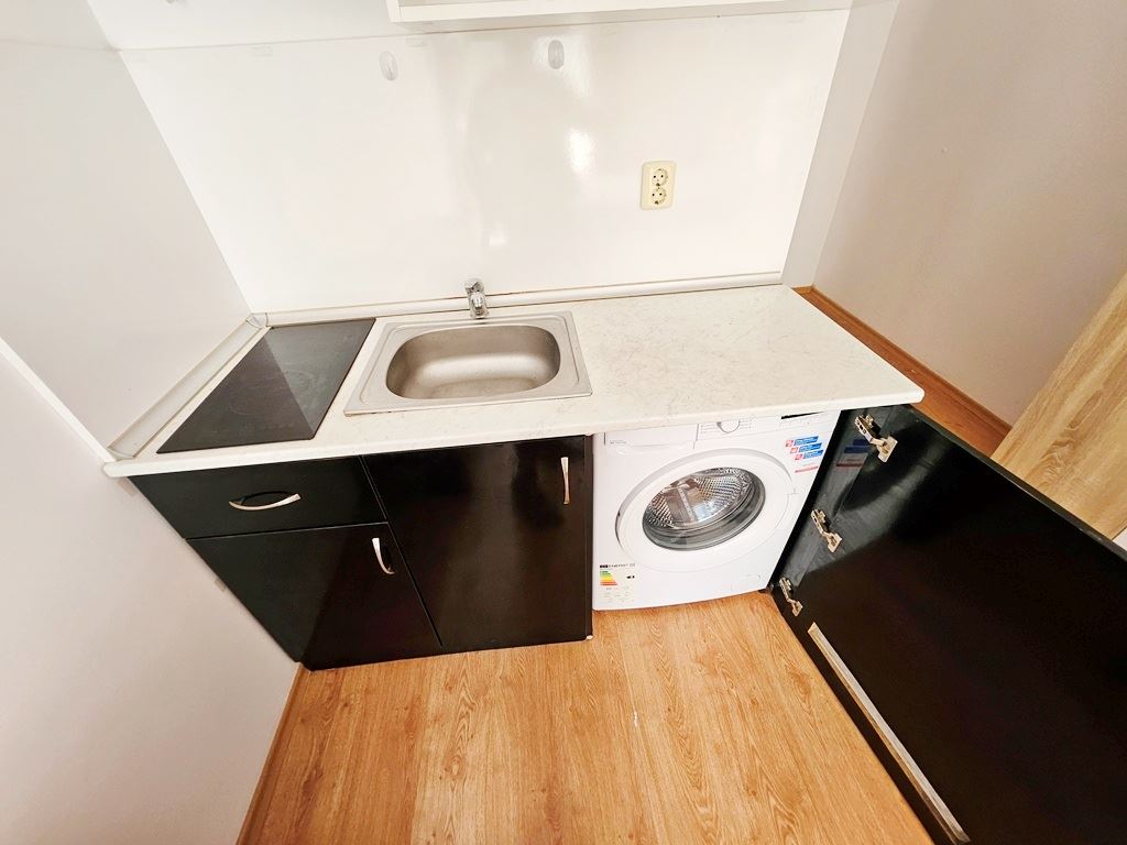 Жилището е проектирано с практично разпределение: едно просторно помещение с обособени зони за дневна и кухненски бокс, баня с тоалетна и удобен балкон – идеален за сутрешно кафе и следобедна почивка. Компактният размер позволява лесно обзавеждане без компромис с комфорта, а асансьорът в сградата гарантира безпроблемен достъп.