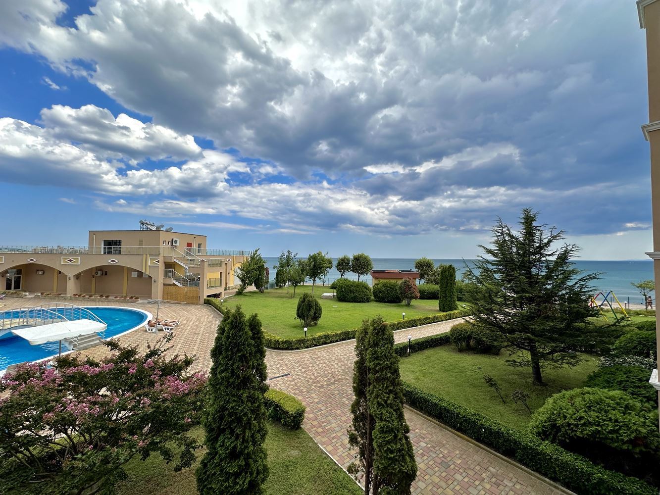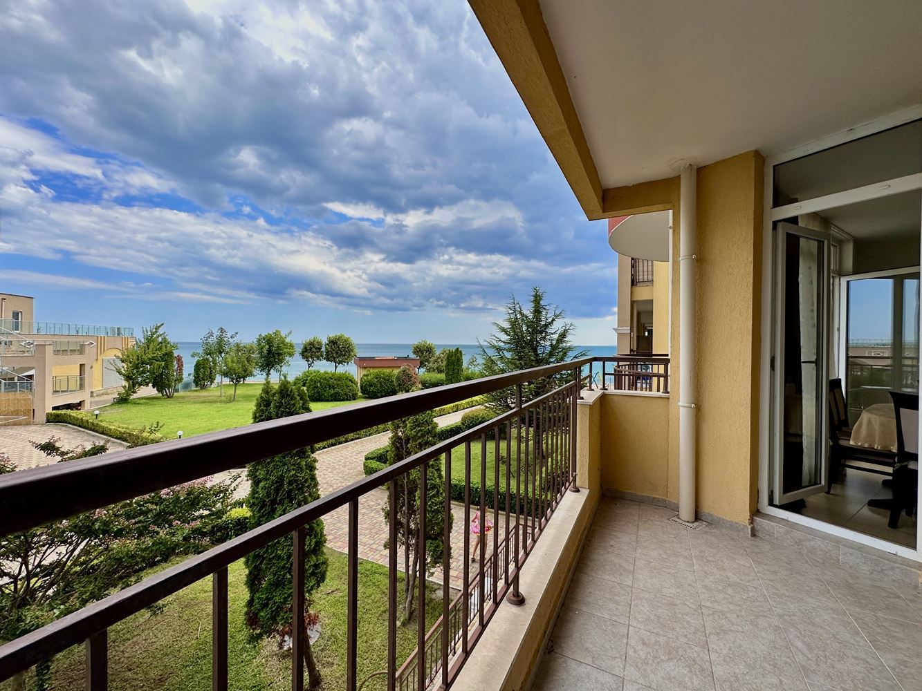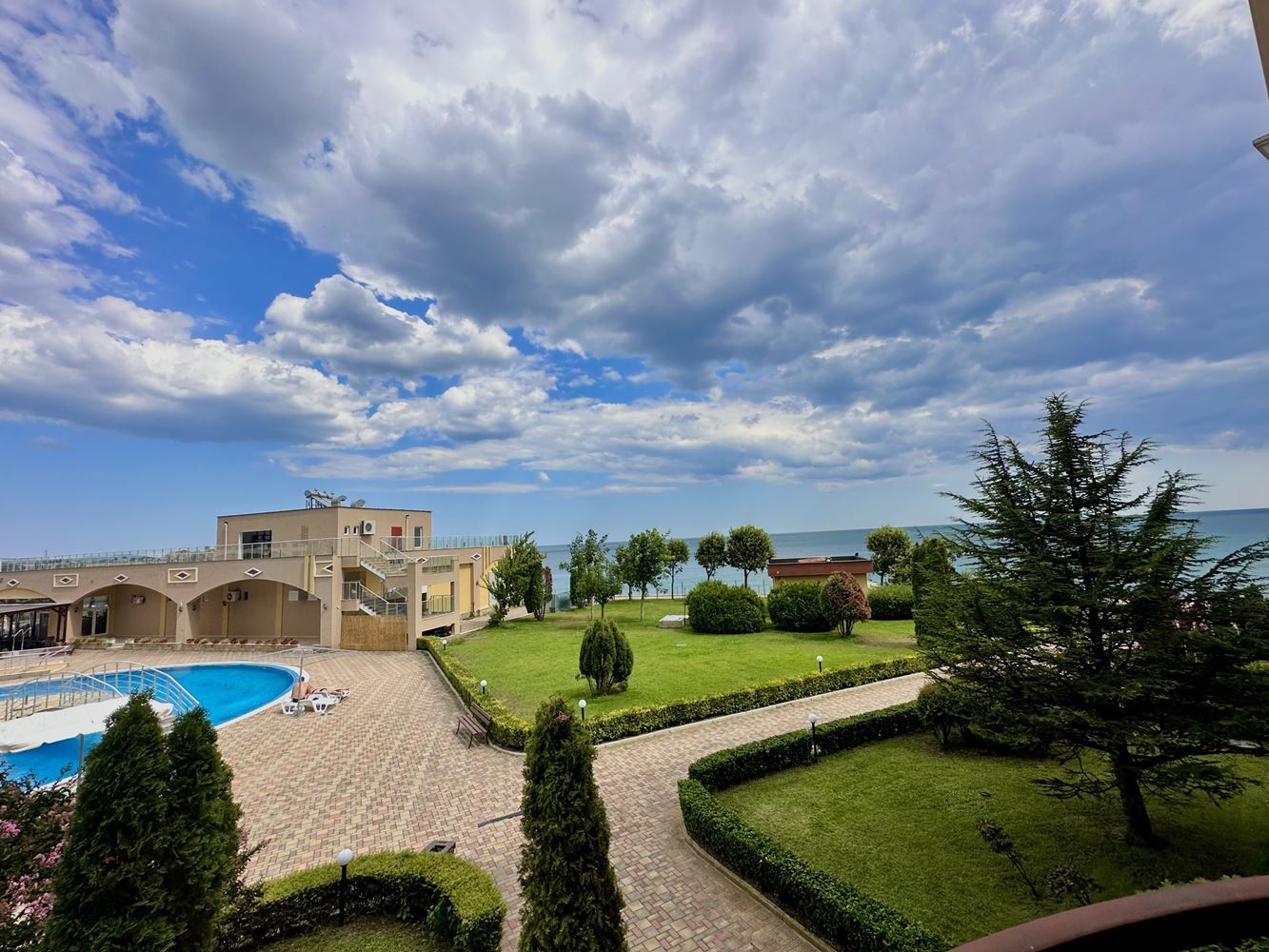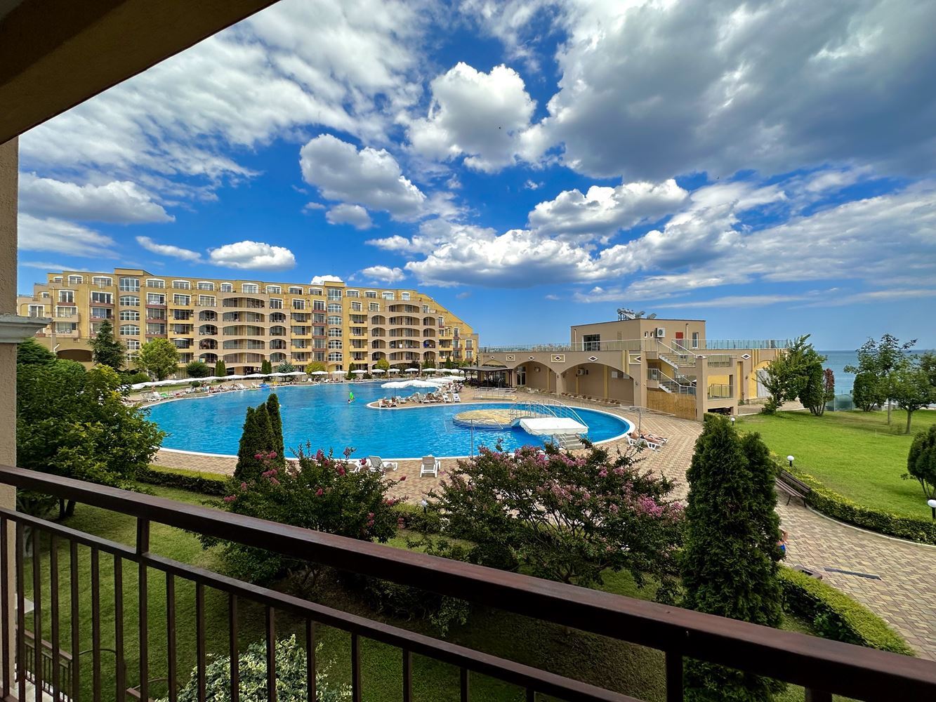 Страхотен двустаен апартамент с гледка море в комплекс на първа линия в Ахелой. Жилището е с площ от 94 кв. м. на втори етаж. Жилището се състои от антре, просторен хол с обособена кухня и място за почивка, спалня, баня с тоалетна и две тераси. Удобства: два големи плувни басейна, ресторант, бар към басейна, магазин, фризьорски салон, паркинг, фитнес, коли под наем и портиер. Комплексът се отличава с отлично поддържани зелени площи, спокойна атмосфера, съвременен дизайн, открити пространства. Състои се от две сгради с партерен етаж и шест жилищни етажа, с югоизточно изложение. Предлага богат избор на екстри.