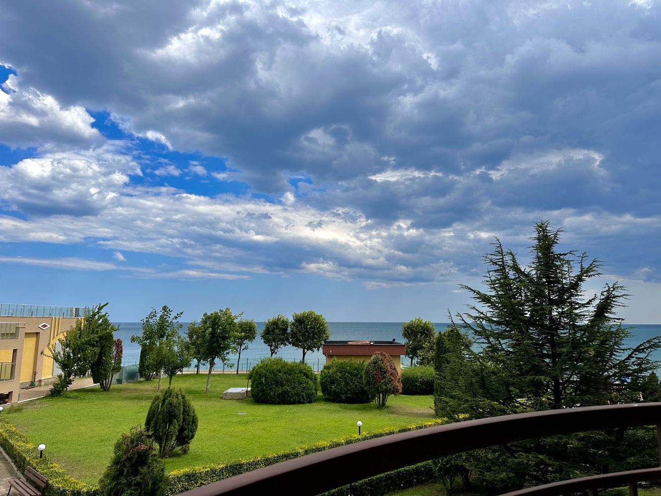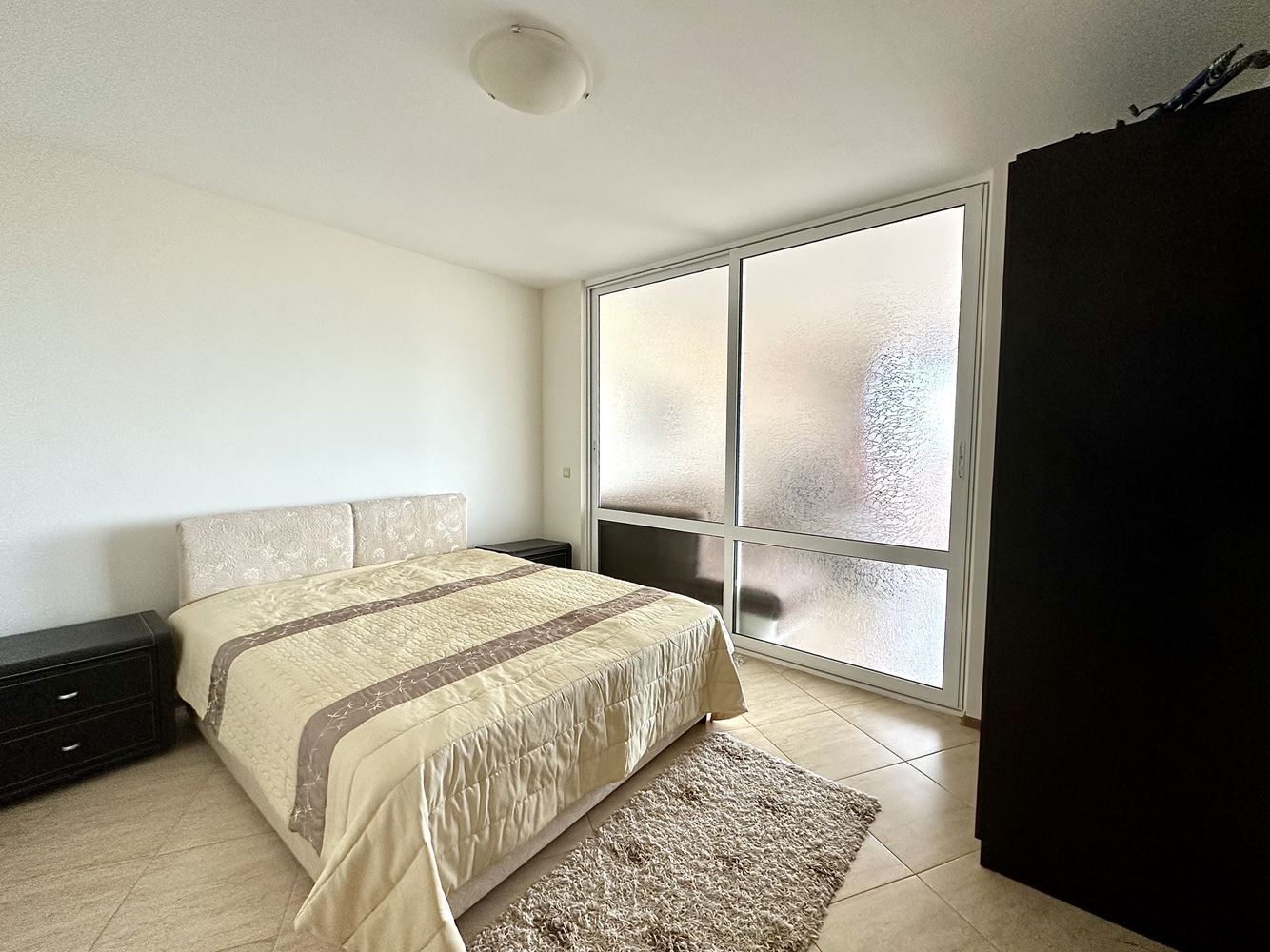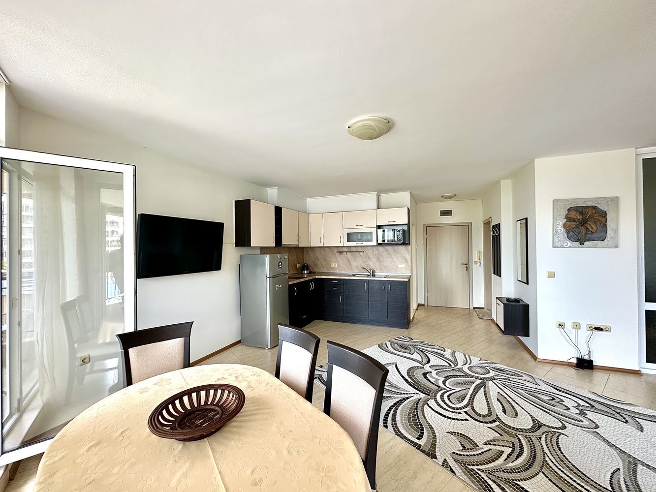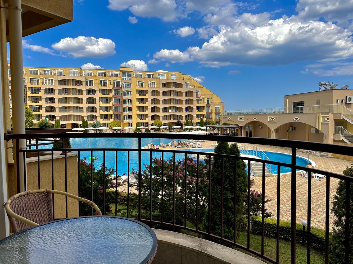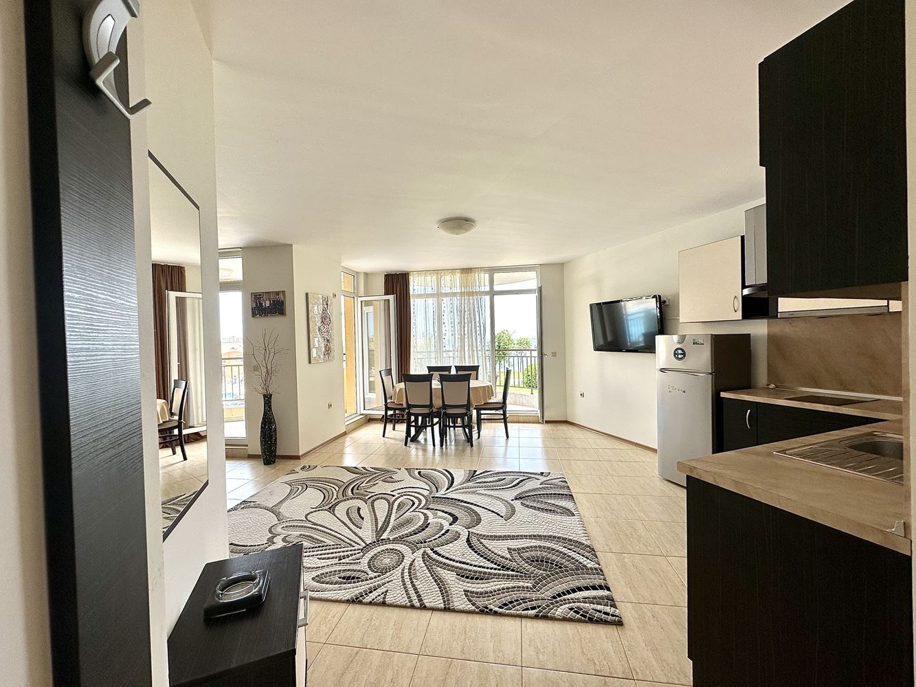 Страхотен двустаен апартамент с гледка море в комплекс на първа линия в Ахелой. Жилището е с площ от 94 кв. м. на втори етаж. Жилището се състои от антре, просторен хол с обособена кухня и място за почивка, спалня, баня с тоалетна и две тераси. Удобства: два големи плувни басейна, ресторант, бар към басейна, магазин, фризьорски салон, паркинг, фитнес, коли под наем и портиер. Комплексът се отличава с отлично поддържани зелени площи, спокойна атмосфера, съвременен дизайн, открити пространства. Състои се от две сгради с партерен етаж и шест жилищни етажа, с югоизточно изложение. Предлага богат избор на екстри.