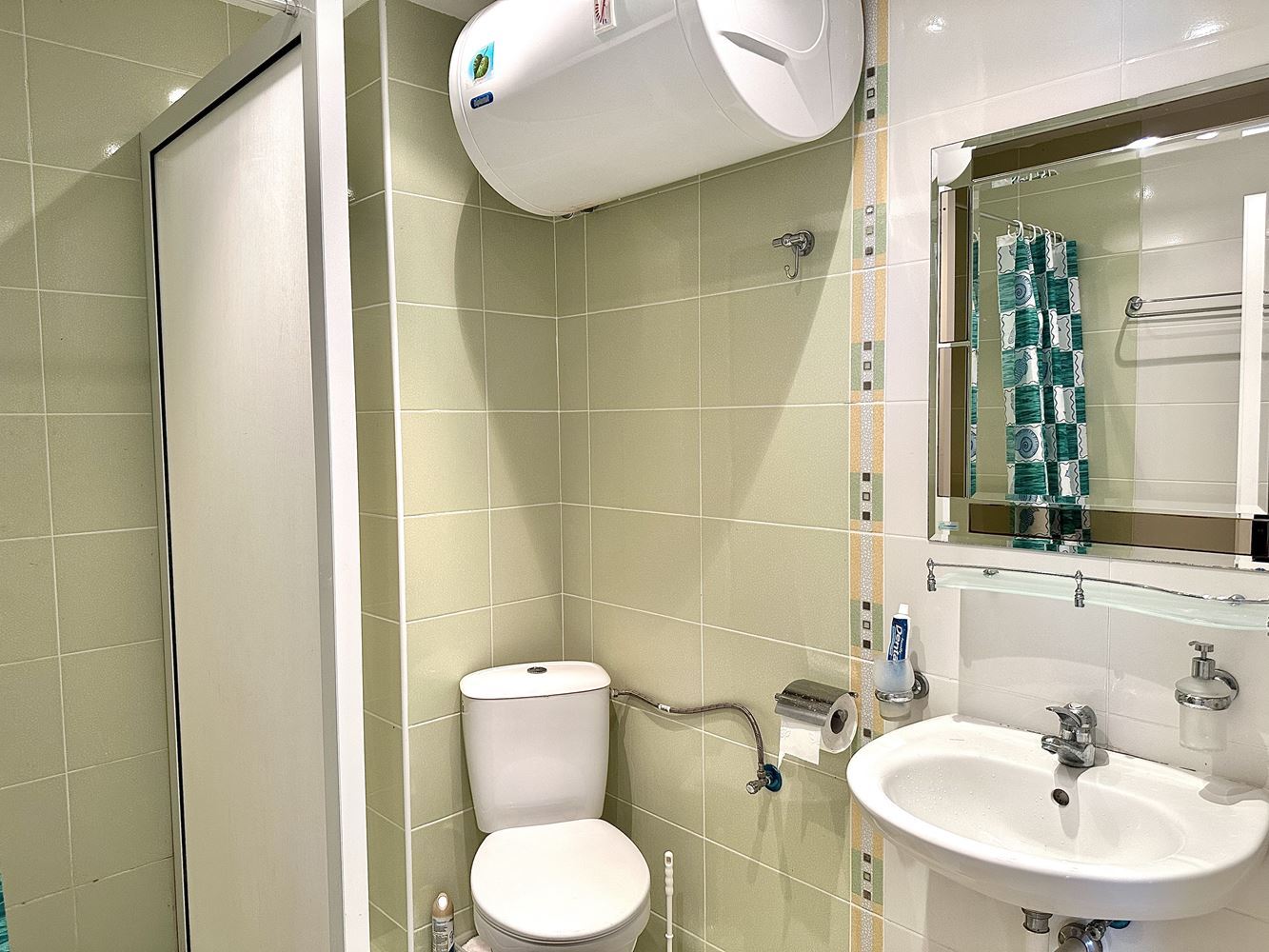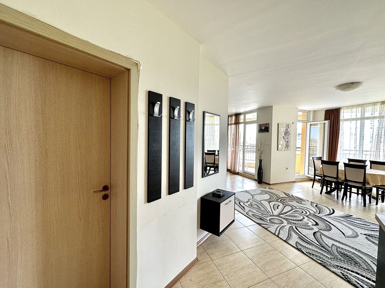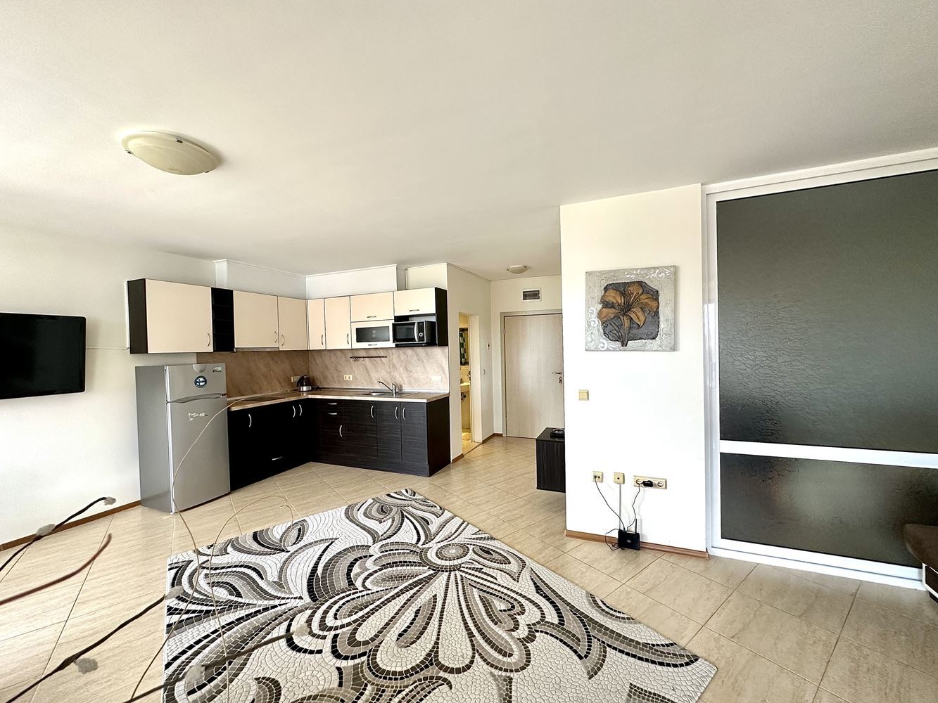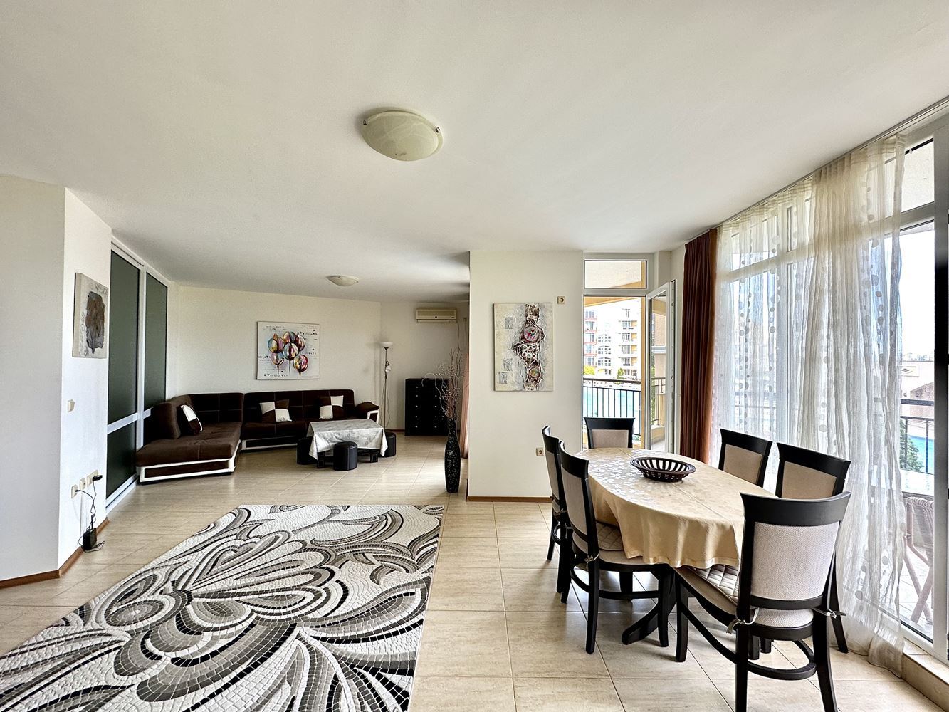 Страхотен двустаен апартамент с гледка море в комплекс на първа линия в Ахелой. Жилището е с площ от 94 кв. м. на втори етаж. Жилището се състои от антре, просторен хол с обособена кухня и място за почивка, спалня, баня с тоалетна и две тераси. Удобства: два големи плувни басейна, ресторант, бар към басейна, магазин, фризьорски салон, паркинг, фитнес, коли под наем и портиер. Комплексът се отличава с отлично поддържани зелени площи, спокойна атмосфера, съвременен дизайн, открити пространства. Състои се от две сгради с партерен етаж и шест жилищни етажа, с югоизточно изложение. Предлага богат избор на екстри.