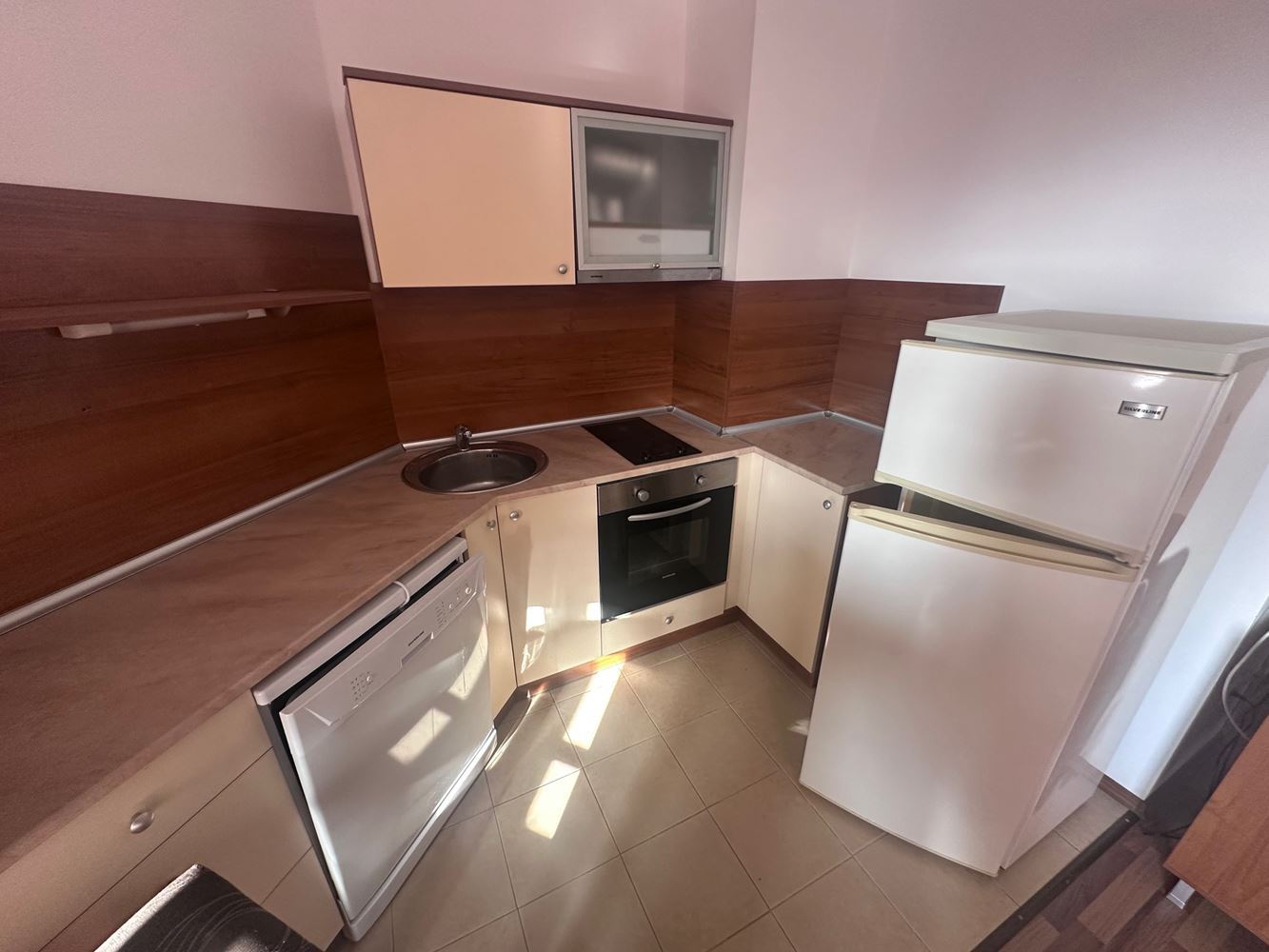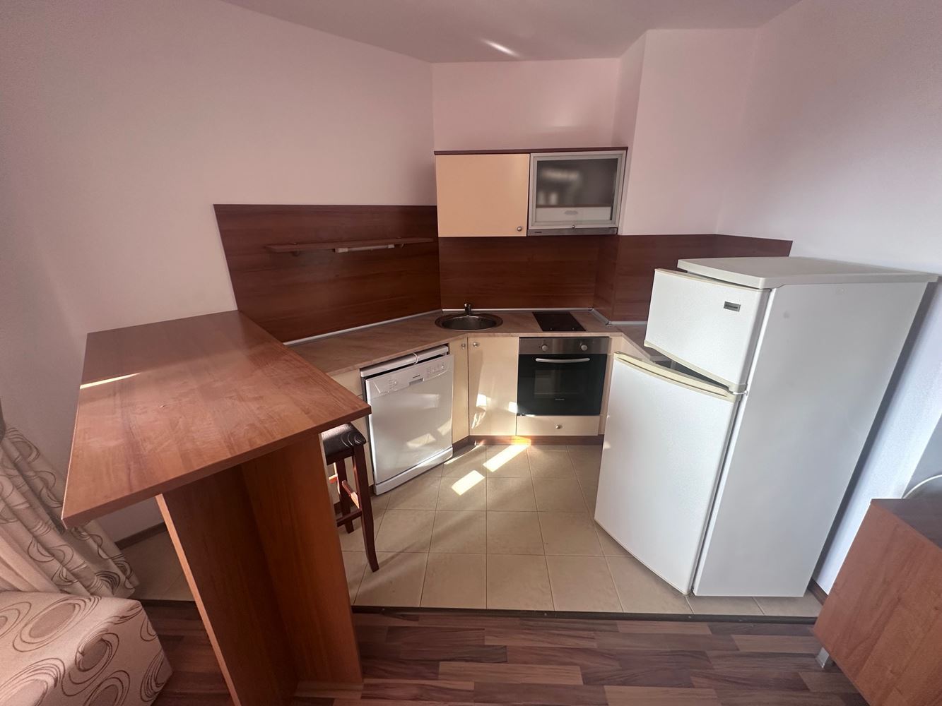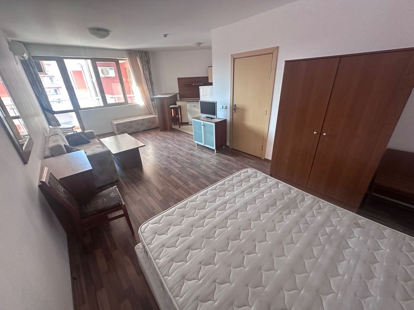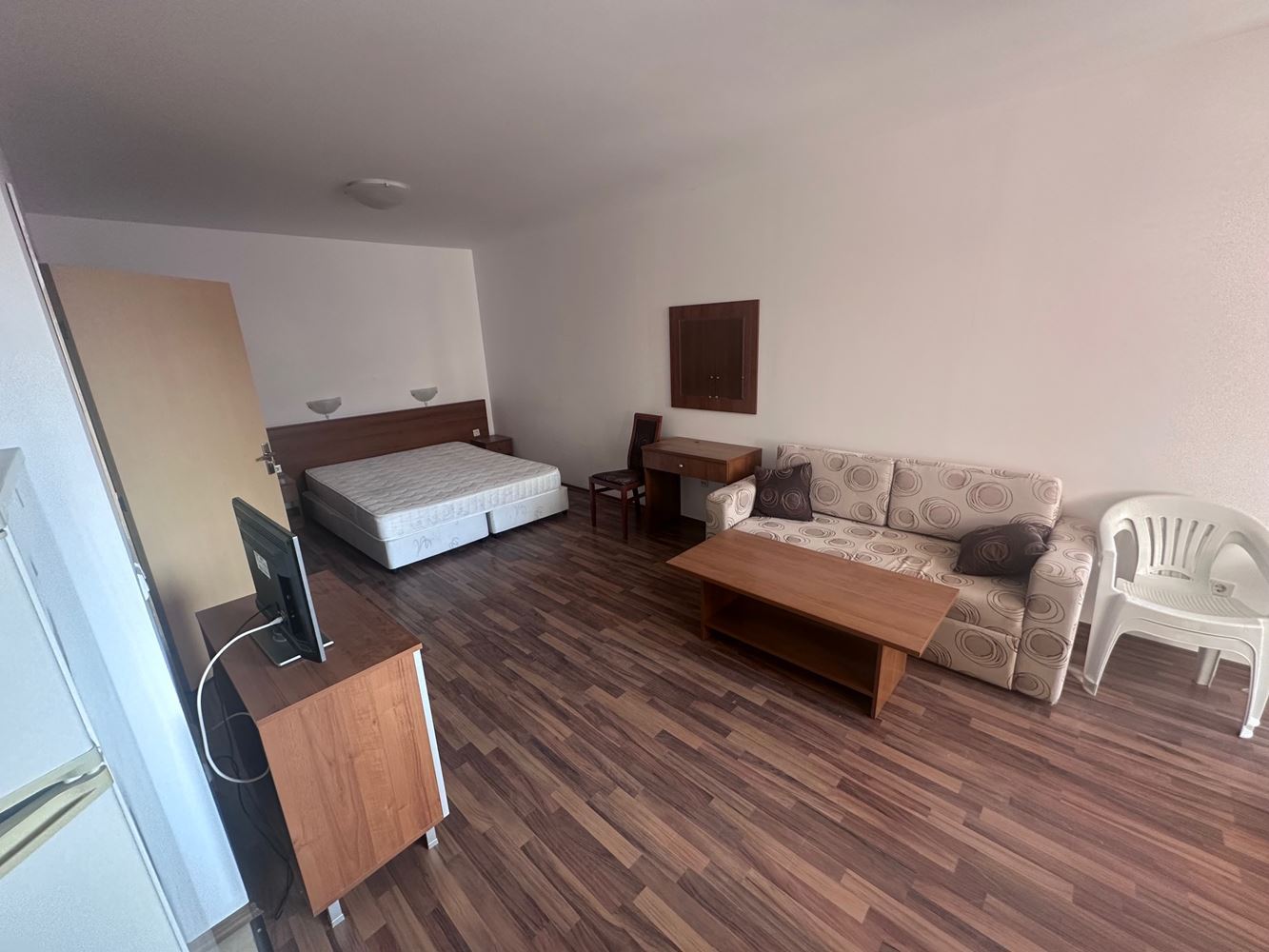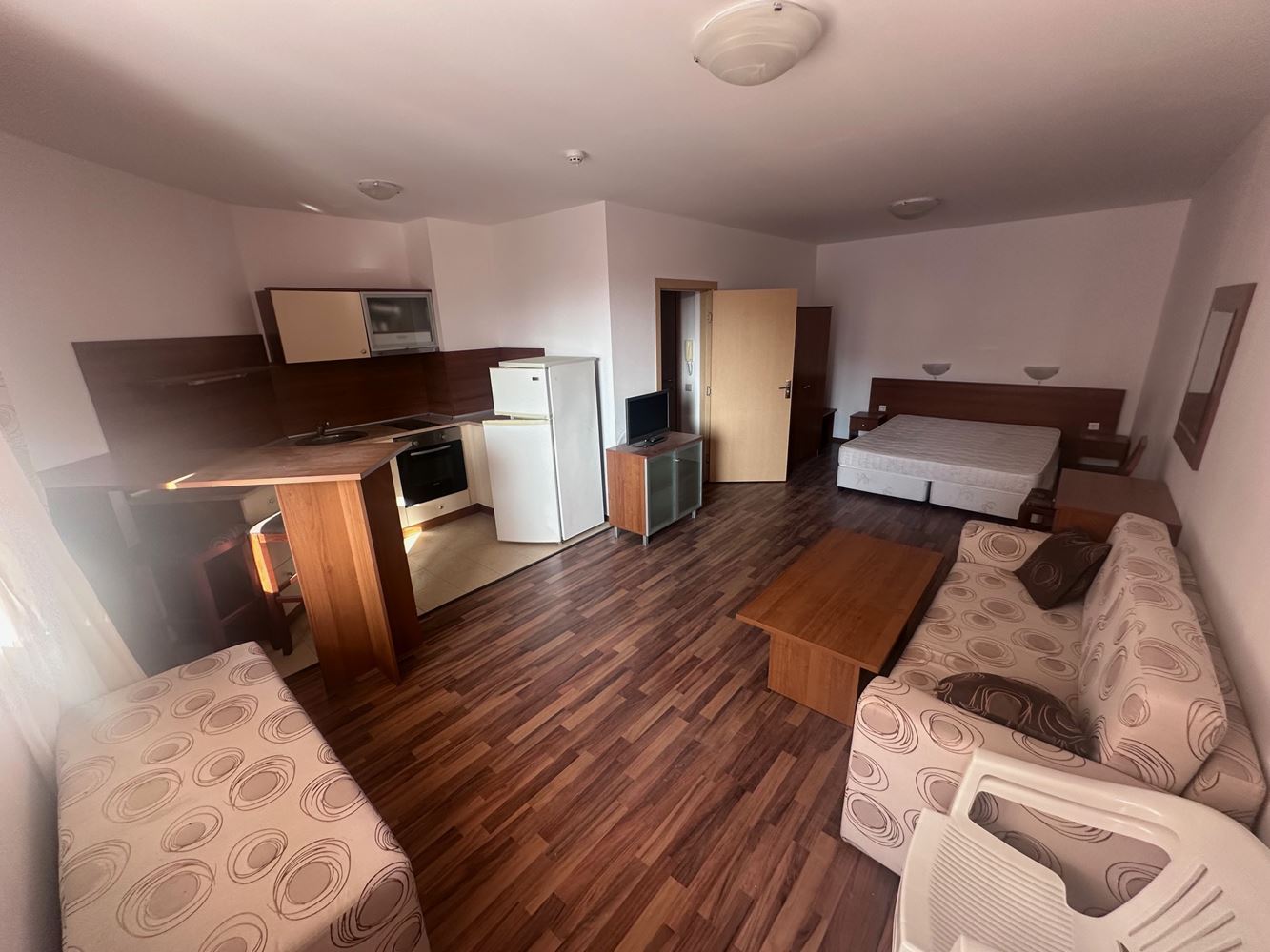 Предлагаме напълно обзаведено студио с площ от 56,07 м2, разположен на първи жилищен етаж в един от най-привлекателните комплекси на границата между Слънчев бряг и Несебър. Имотът съчетава спокойствие, удобство и престижна локация, осигурявайки лесен достъп до всички туристически и развлекателни възможности, които двата курорта предлагат. Апартаментът е функционално разпределен и включва светла дневна с кухненски кът, баня с тоалетна и тераса с гледка към басейна. Жилището се продава напълно обзаведено и оборудвано, готово за незабавно нанасяне или отдаване под наем. Просторът и внимателният дизайн създават комфортна и уютна атмосфера за целогодишно живеене или ваканционен престой.