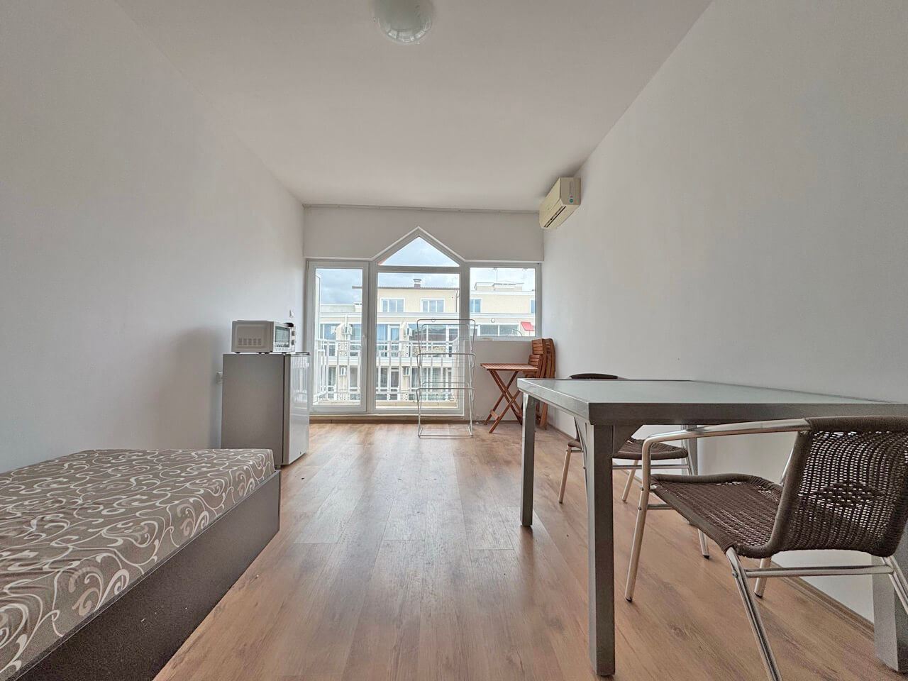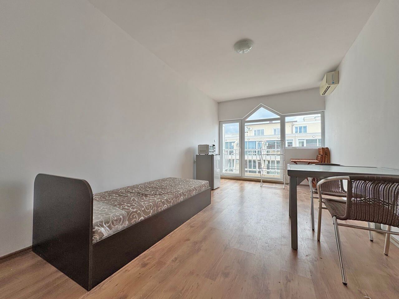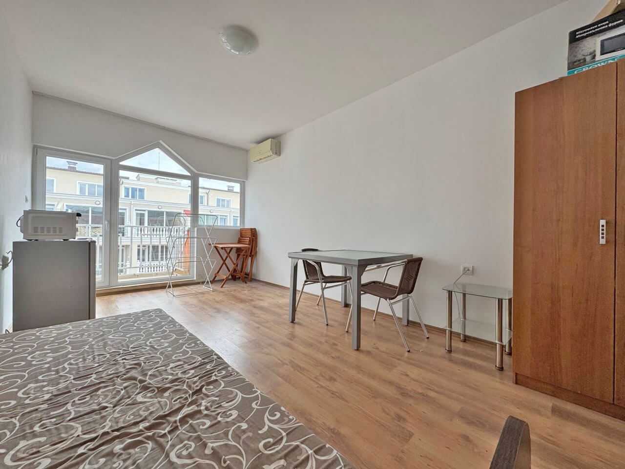 Локацията на имота е стратегическа – близостта до плажа, магазини, кафенета и развлекателни заведения осигурява лесен достъп до всички удобства на курорта. Това студио е отлична възможност за хора, които търсят компактно, практично и модерно жилище с гарантиран комфорт и сигурност, съчетано с възможност за активен морски начин на живот.