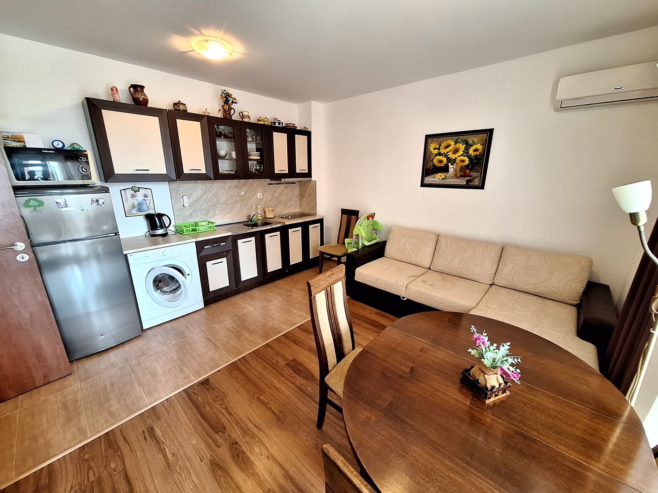 Този двустаен апартамент е напълно готов за нанасяне, като предоставя отлична възможност за нов дом или инвестиция в един от най-привлекателните райони на Свети Влас. Не пропускайте шанса си да притежавате този уникален имот! Свържете се с нас за повече информация и организирайте оглед днес.